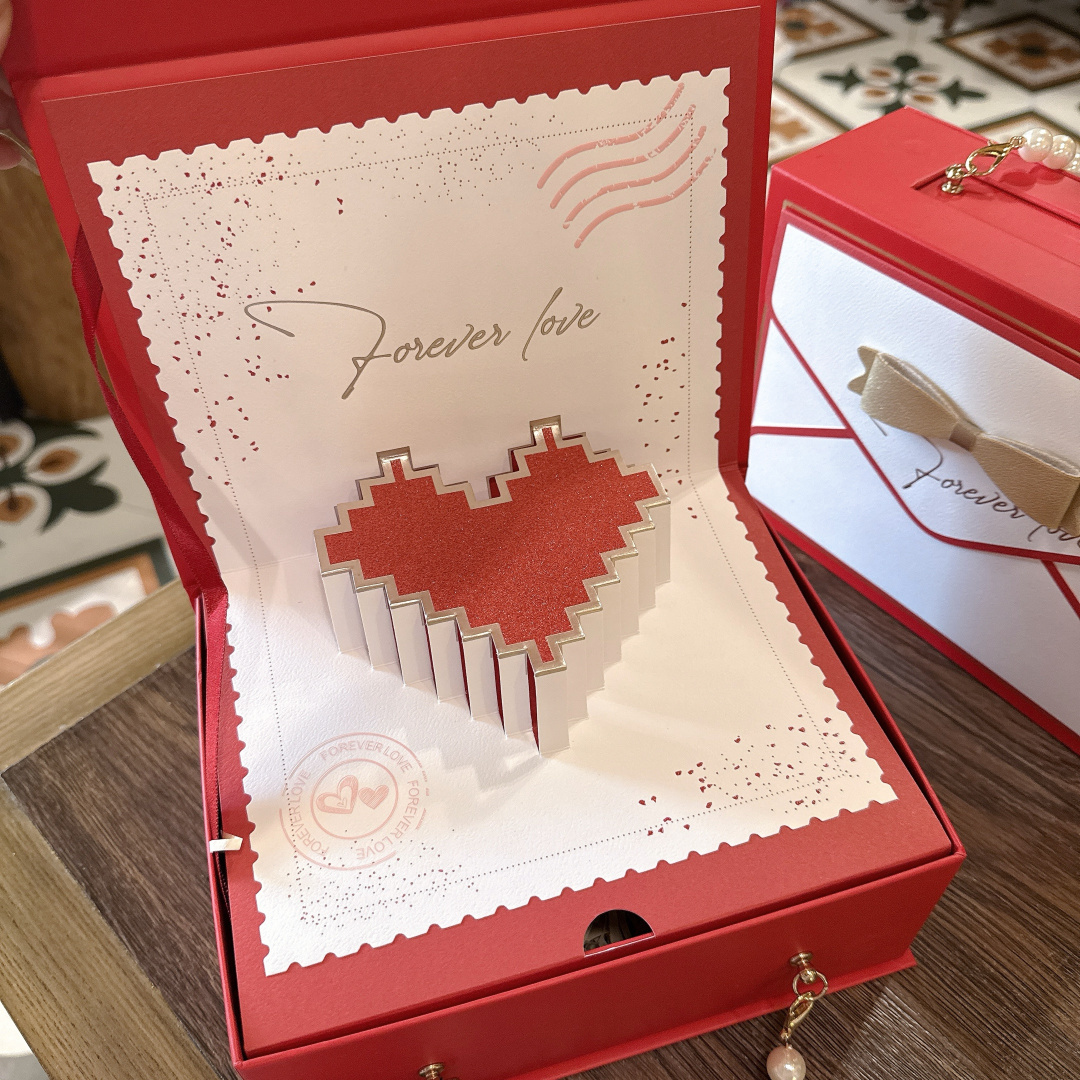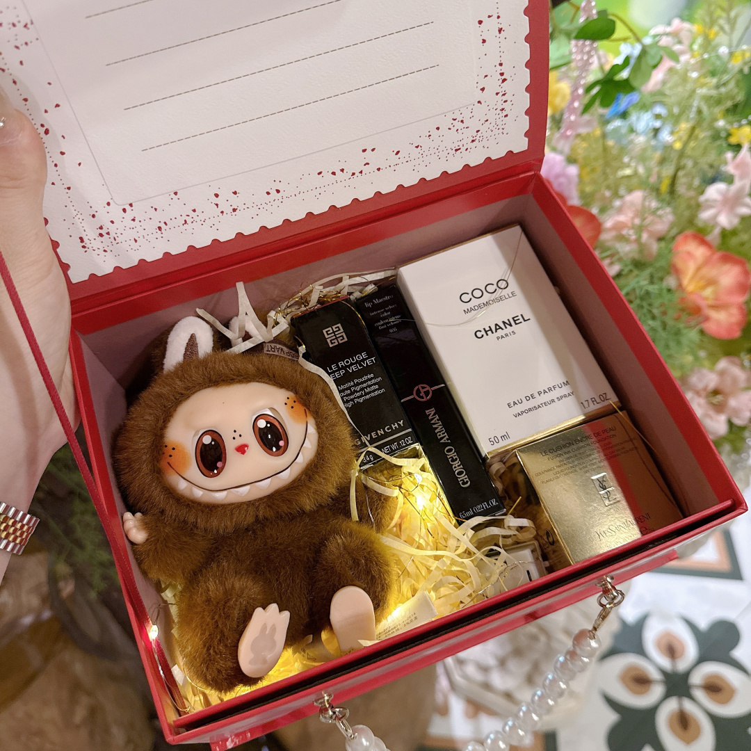 所见所得高品质信封立体爱心白Coco香水口红礼盒 随机送拉布布 配打包盒 这礼盒简直把浪漫焊死在包装上 打开瞬间弹出爱心立体设计 forever love 直接把仪式感拉爆 珍珠手提链拎着像拿情书