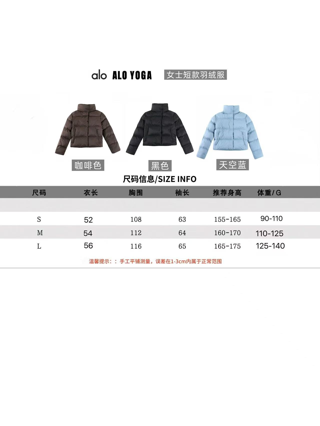 代发 90绒 ALO yoga 新款女士四格小短款羽绒服 alo作为2025年最火的品牌 没有之一 ALO家该款羽绒服深受国内外顶流明星青睐 肯豆更是表示如果今年只选一件羽绒服 那就是alo的这件小短款了 颜色 黑色 蓝色 肯豆咖 尺码 SML 羽绒 90 白鸭绒 面料 尼龙三防面料