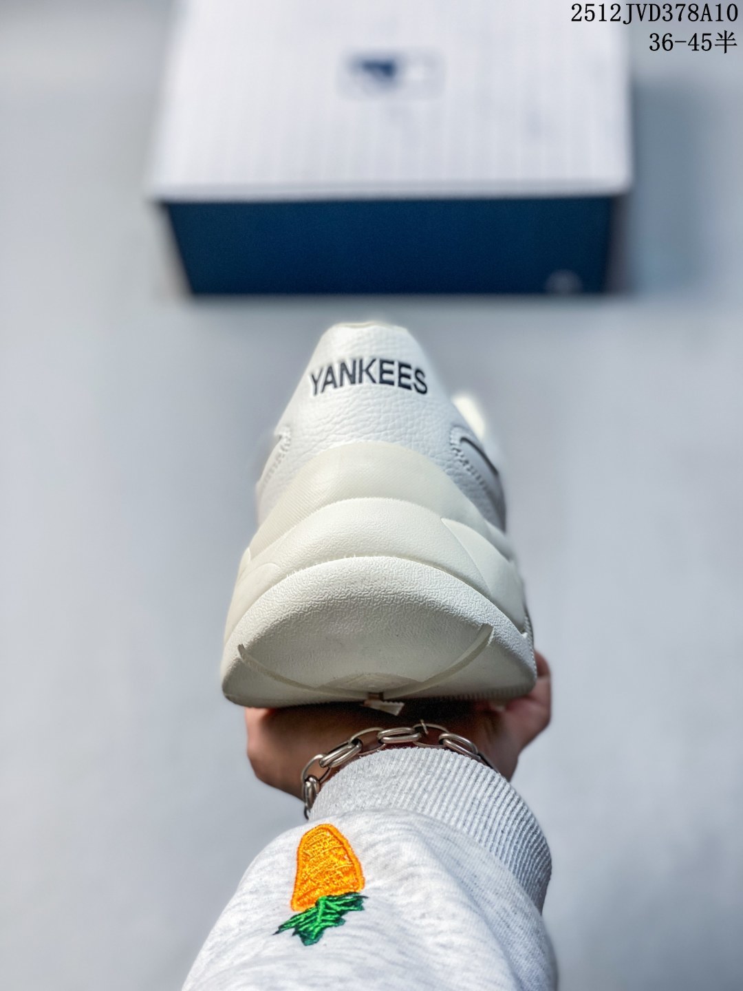 公司级Korea韩国限定发售 NY美国榄球洋基队限定 x MLB Big Ball Chunky Mesh 厚底老爹联名系列低帮网织轻量休闲运动慢跑鞋 网眼象牙白黑NY印花