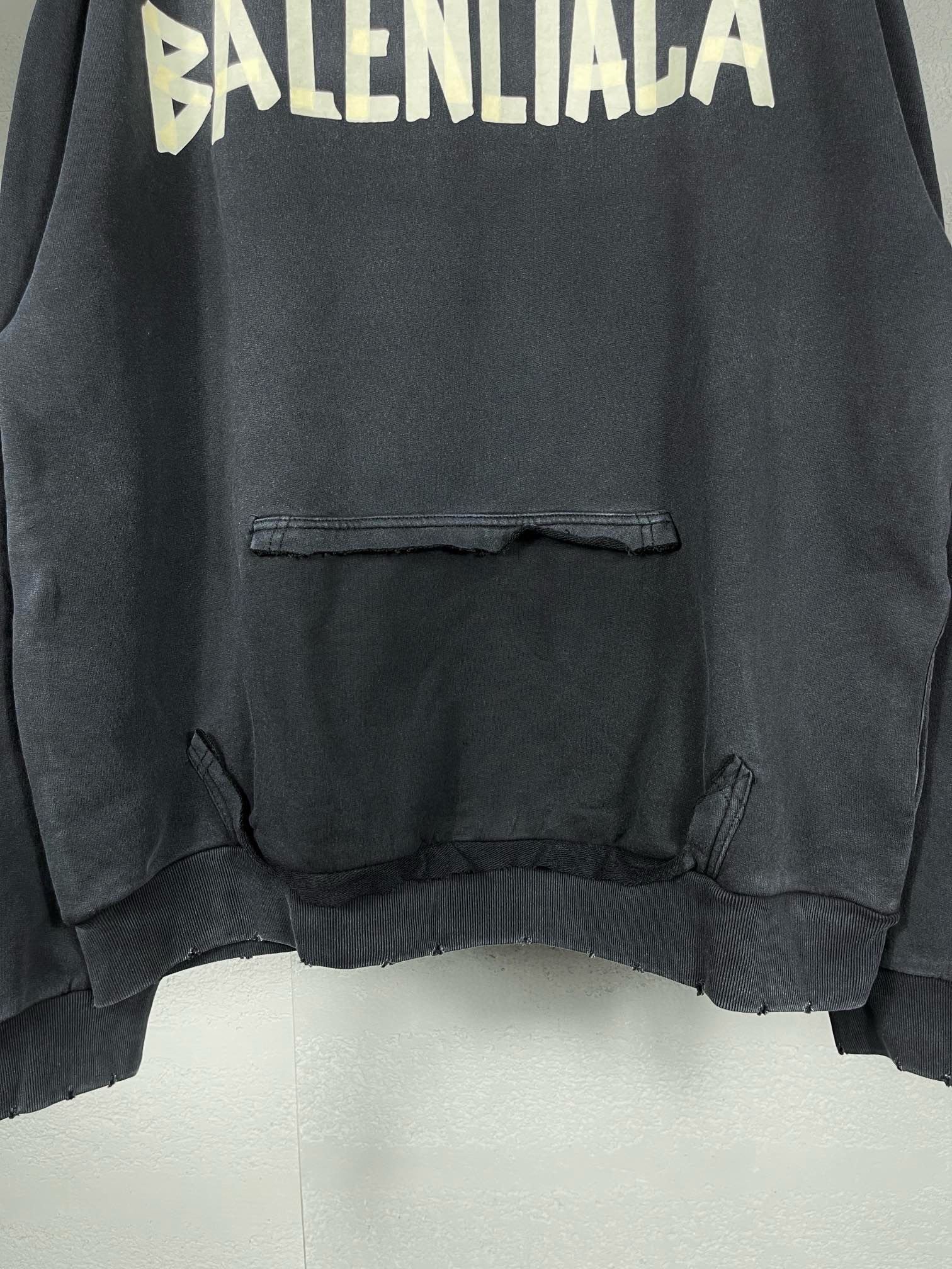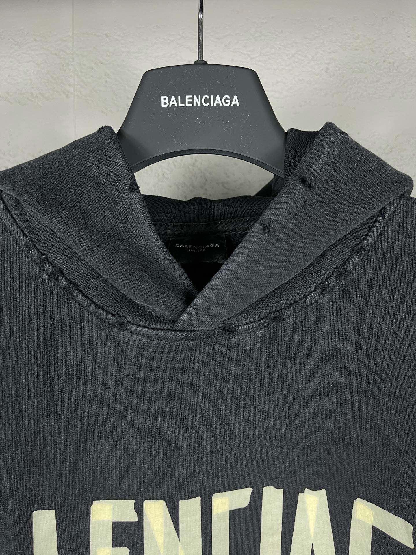 实拍图 顶级版本 官网品质 BALENCI GA 巴黎 23ss最新经典大爆款 第一时间购入原板 颜色 印花 水洗 制作跟回正品 巨别市场错版 欢迎对比 胶带直喷印花 成衣2次水洗磨烂做旧连帽卫衣 砖柜同步 面料采用巴黎ZP定织定染全棉大卫衣 克重450克 布面干净 布纹清晰 柔软舒适 螺纹釆用定染无色差 经典图案采用康丽进口直喷 字母清晰 效果立体 还原砖柜 成衣水洗作旧 多位手工磨烂 超重工艺生产 巨别市场通货 注意ZP面料是细纹细纱织 注意巨别 欢迎对比 的版型釆用OS宽松落肩版型 男女同款