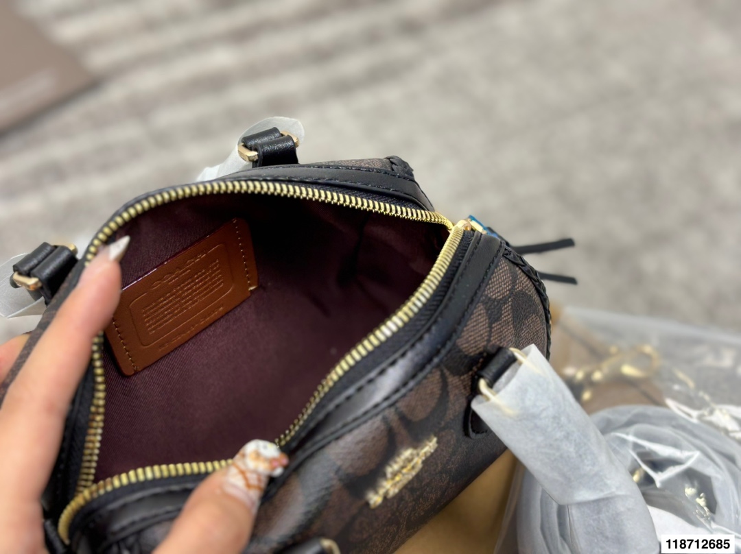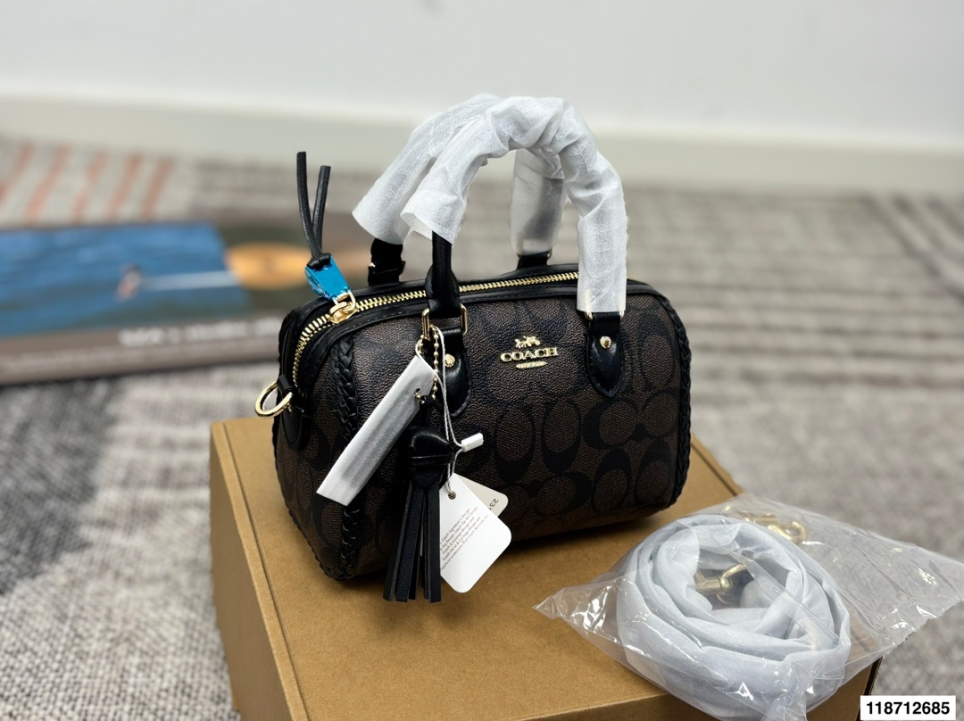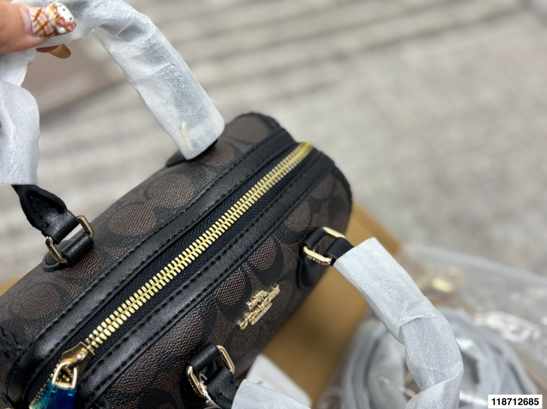 配盒尺寸17 13 蔻驰 mini波士顿枕头包 非常耐看包包 348717
