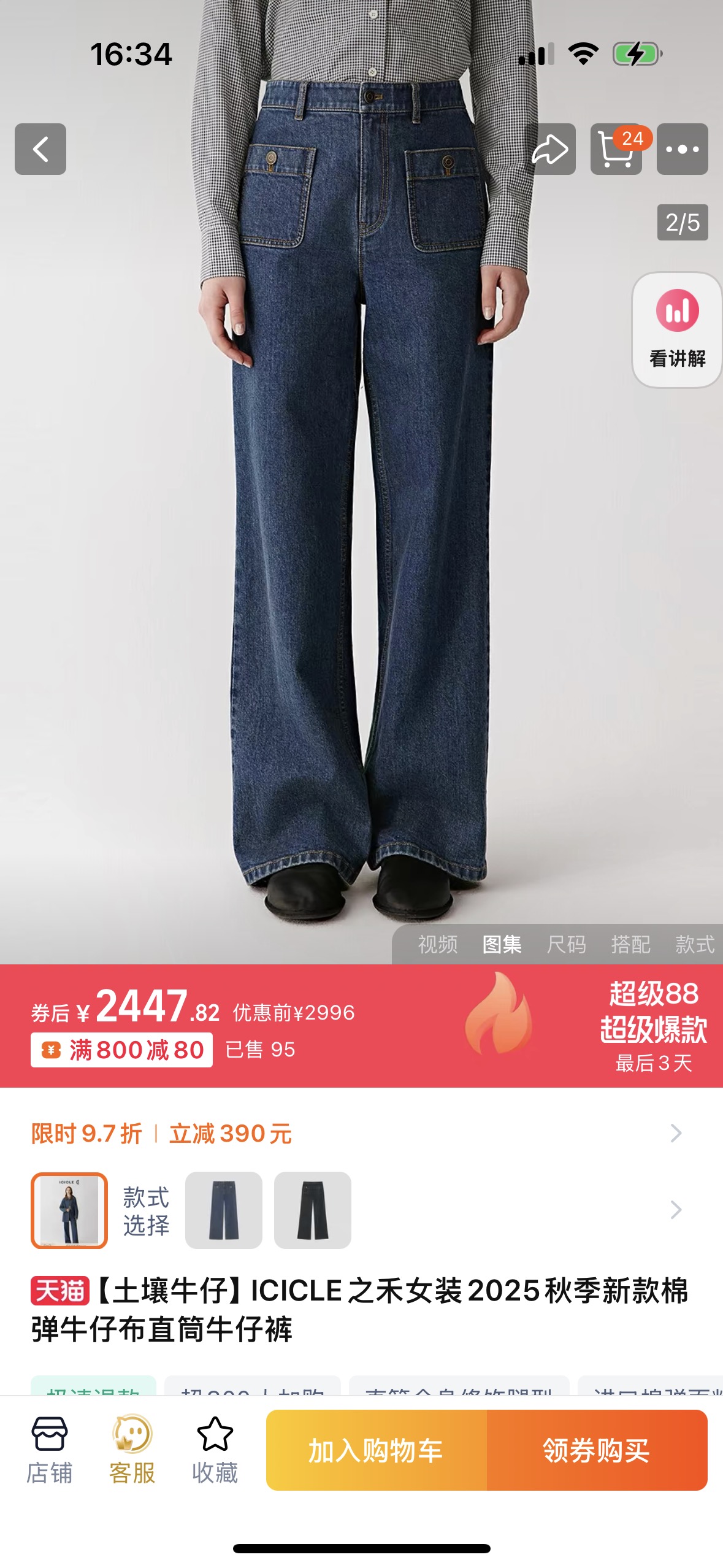 秋季新款加绒牛仔裤之禾女装25秋季新品棉弹牛仔布直筒牛仔裤