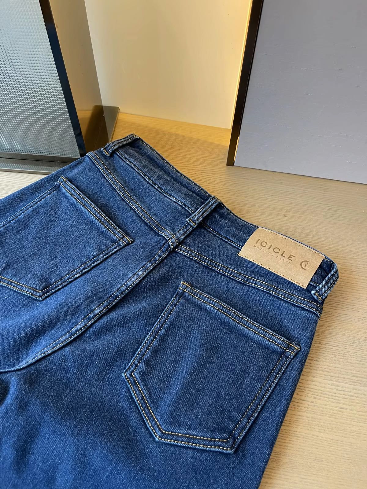 高腰直筒剪裁 提臀遮胯微贴腿 留有一点余量不会紧绷在身上