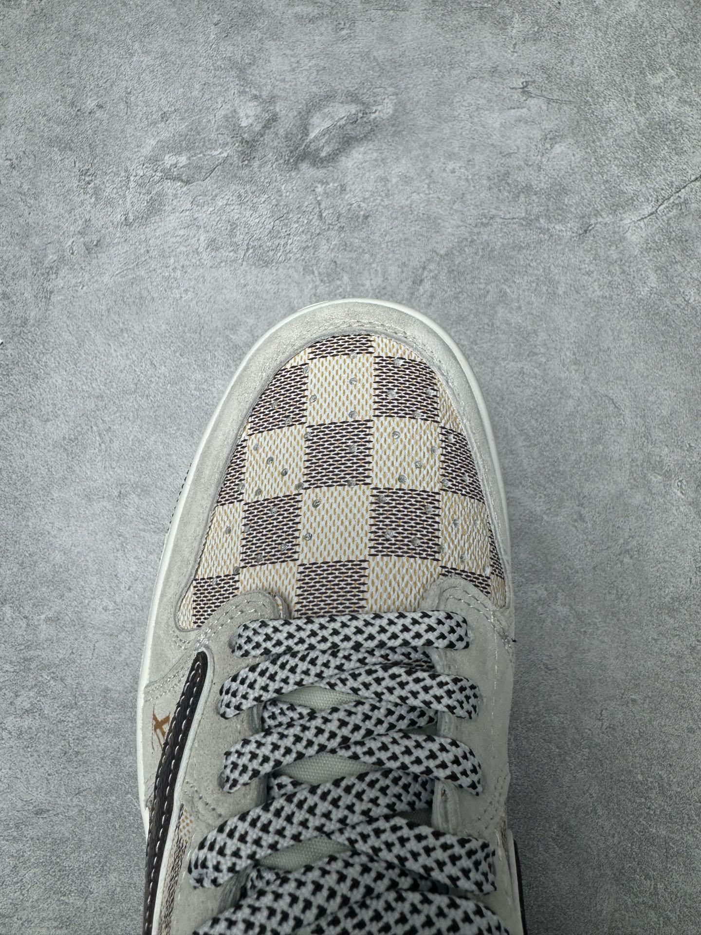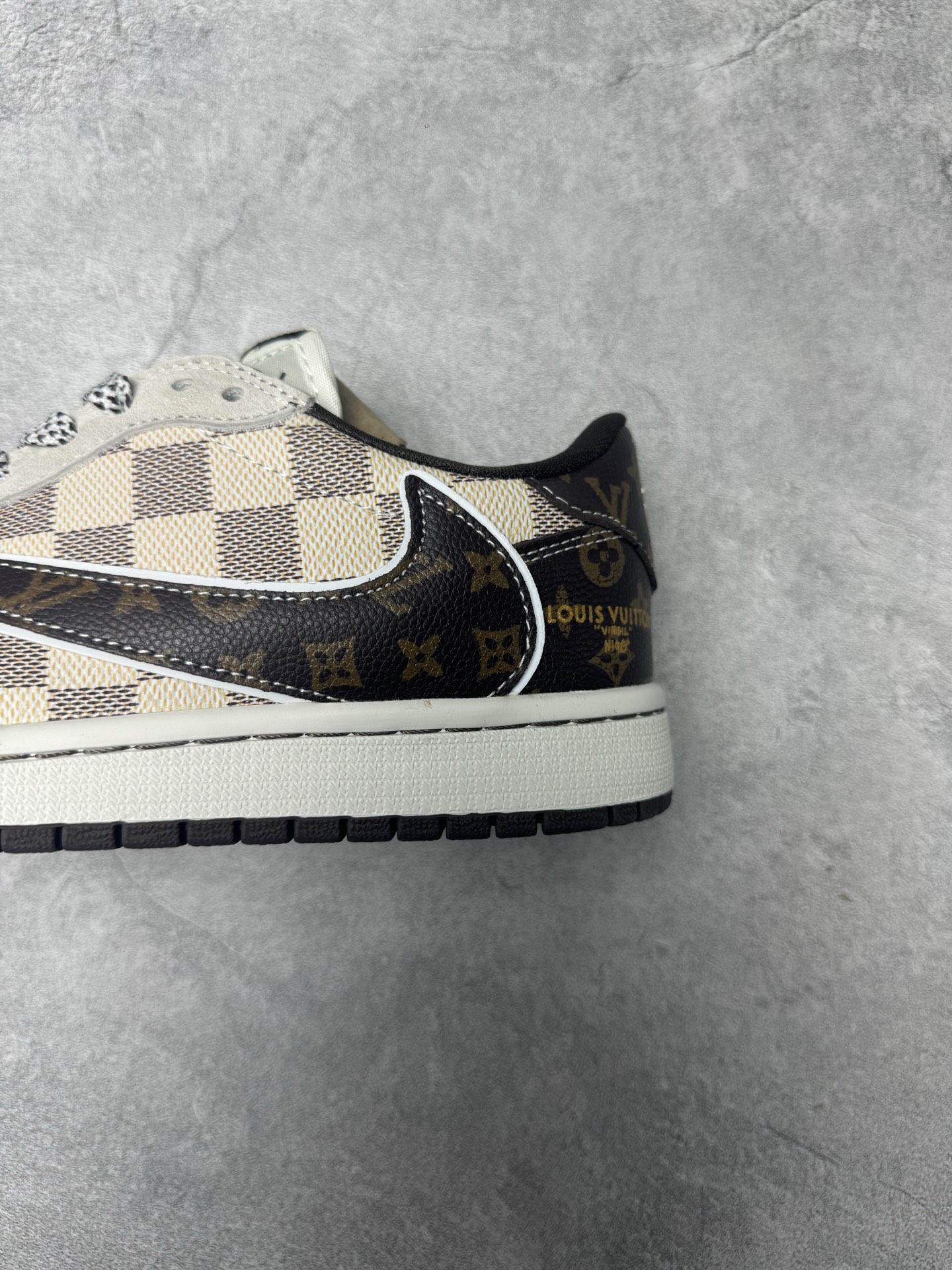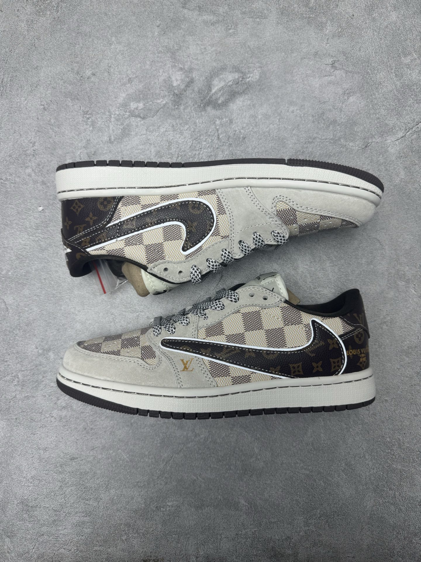 XC版Travis Scott x Fragment Design x Jordan Air Jordan 1 Low OG SP LV联名 方格米棕 多方联名合作融合了Travi翻毛蓝勾s Scott 独特的音乐风格 藤原浩个性的设计风格以及Jordan品牌的经典元素 使其成为一双具有独特身份和价值的鞋子 清新而立体的外观加上联名标识更突出了其独特身份 这种配色方案显示出活力和时尚感 在视觉上引人注目 鞋身的质感和细腻的细节处理使其显得高端而格调十足 这款 倒钩 联名是设计与创意完美结合 融合多方的个性风格是一款备受瞩目的潮流鞋款 低帮休闲板鞋 定制鞋盒 大厂纯原品质出货 超高清洁度 皮料切割干净无任何毛边 细节完美