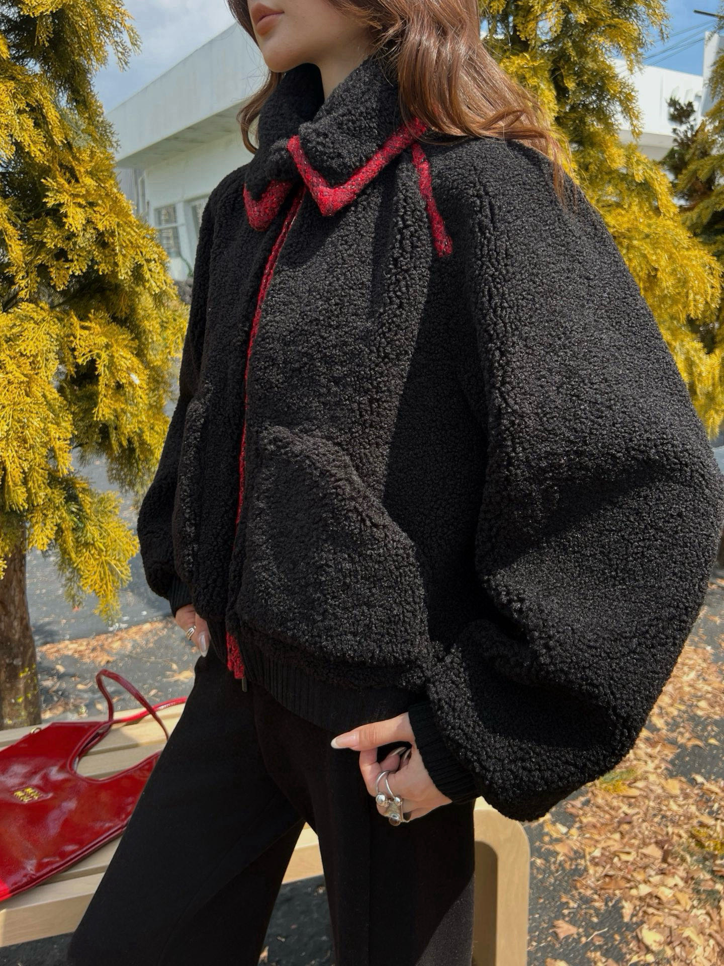 230135902 - Chanel香奈儿小香后背字母双C重工刺绣撞色翻领拉链泰迪羊 383674