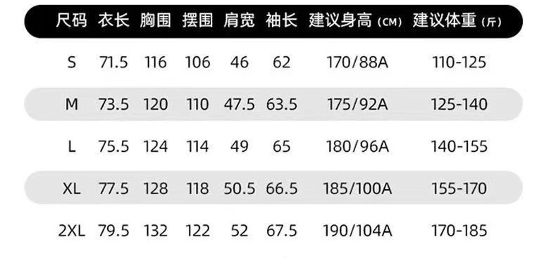尺码 S M L XL 2XL