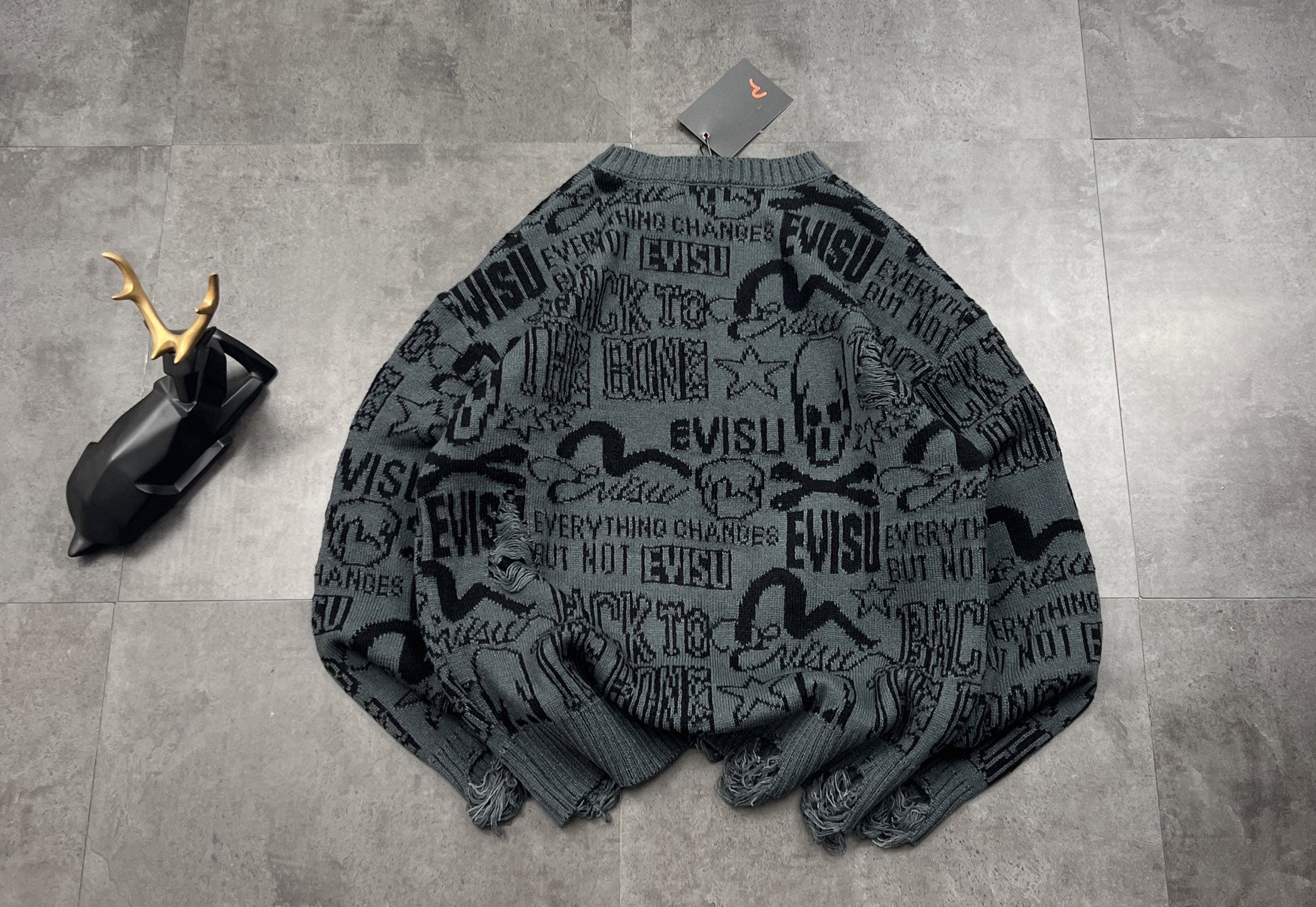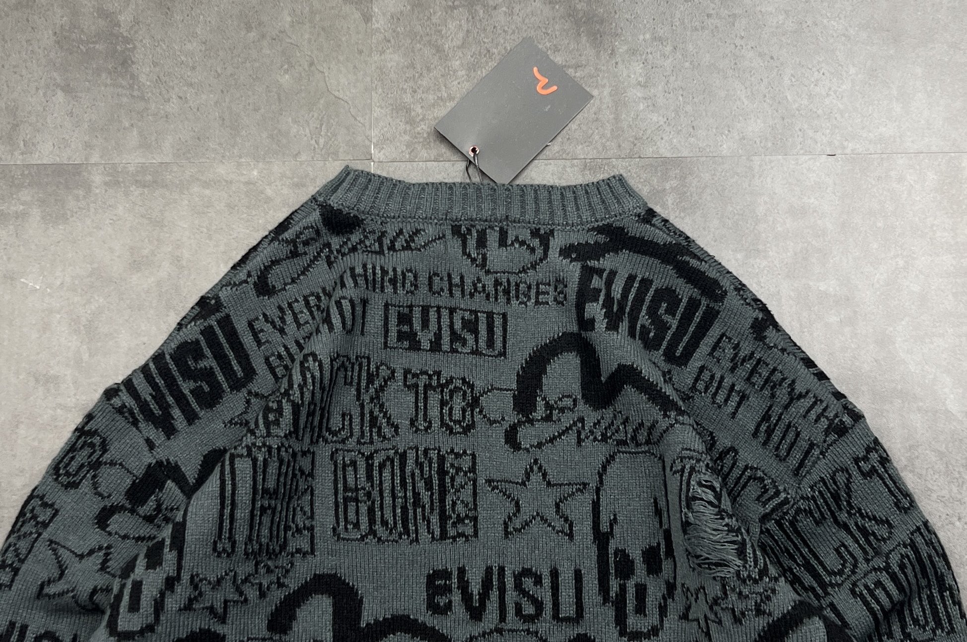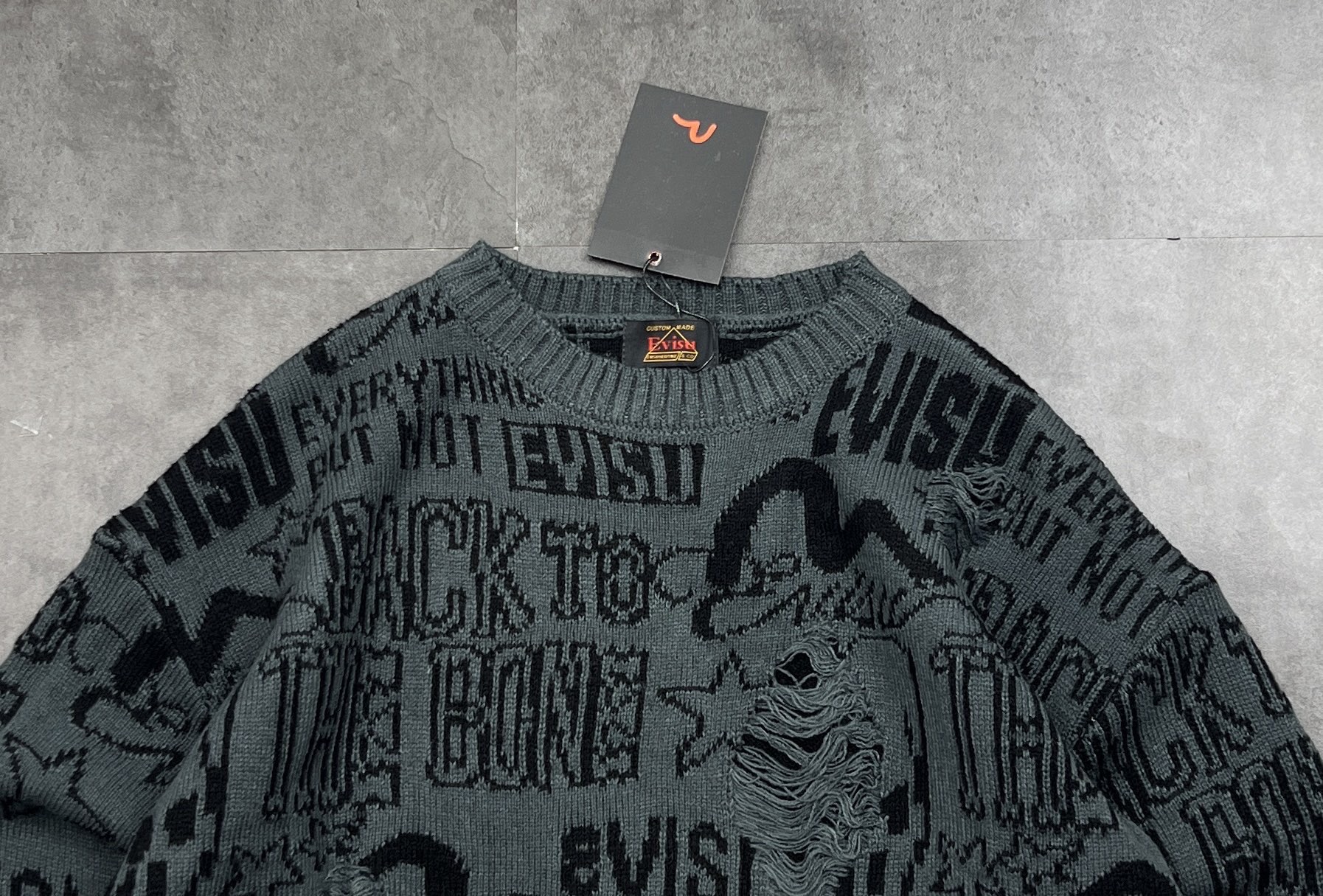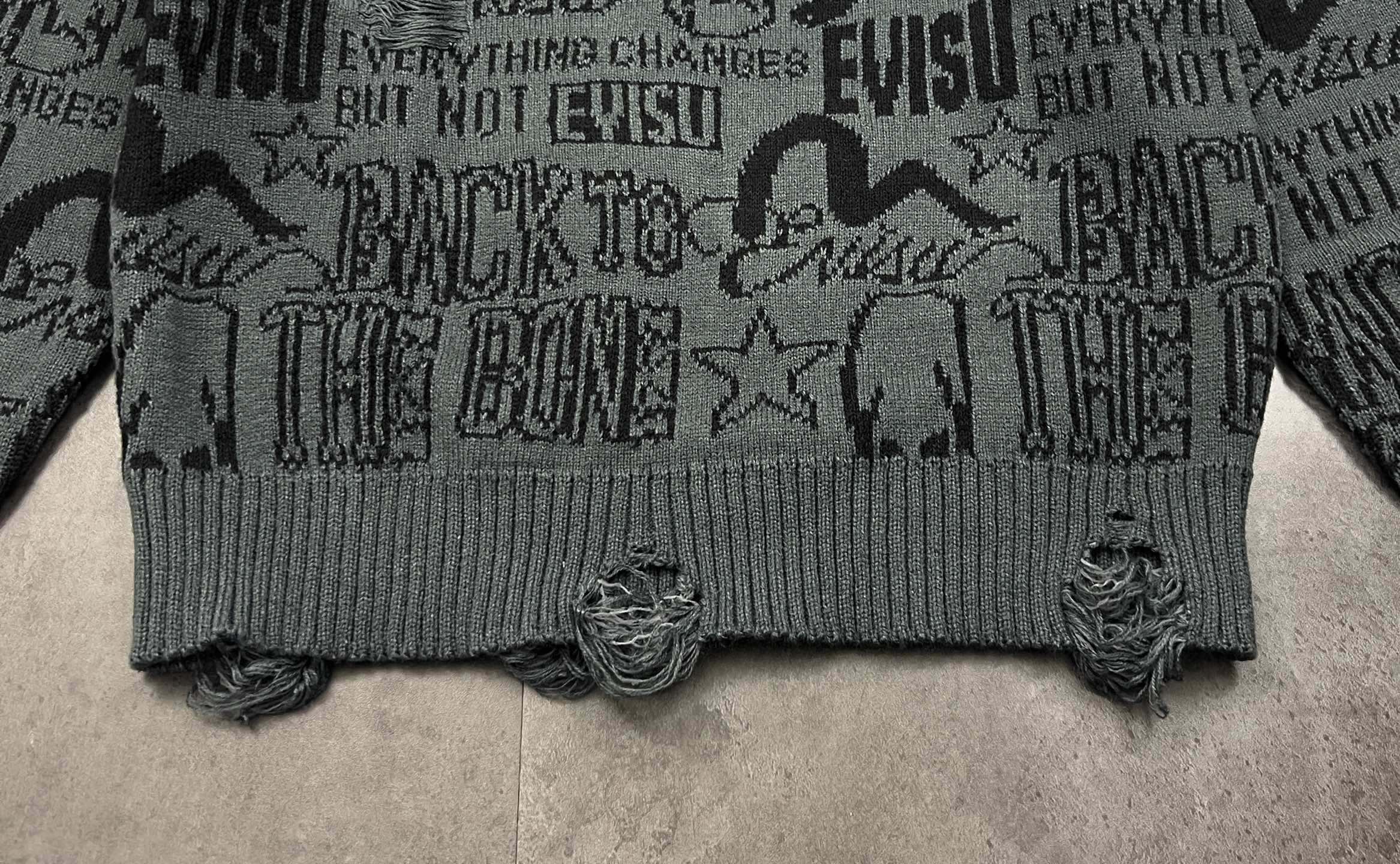 新款长袖毛衣上新 2025冬季新品EVISU 福神这件情侣款破洞宽松落肩字母毛衣 潮到骨子里了