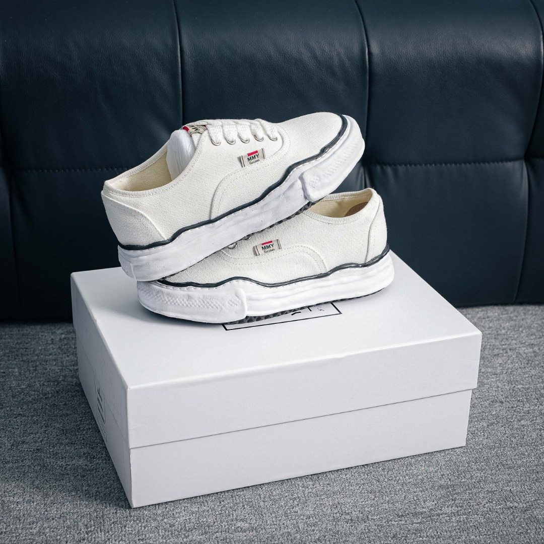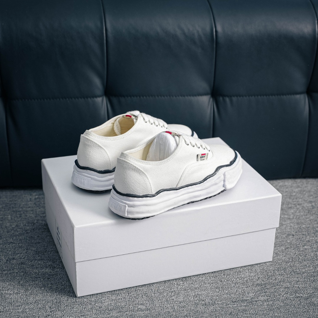 礼盒版本 东莞大厂出品 原楦原纸版开发楦型 全新开发双模一次发泡点位气孔EVA中底 底部嵌入组合RB橡胶耐磨大底 采用软质粒面牛皮革鞋面材质 正确织麦及包装盒 清晰后跟LOGO 挂镀双层眼扣不生锈不掉漆 区别市面普通版本余文乐挚爱2026ss新品 复古溶解风日本概念时装设计师 三原康裕品牌MMY Maison Mihara Yasuhiro Original STC Sole Leather Low cut sneakers经典贝壳头版变形溶解雪糕底低帮休闲百搭帆布板鞋