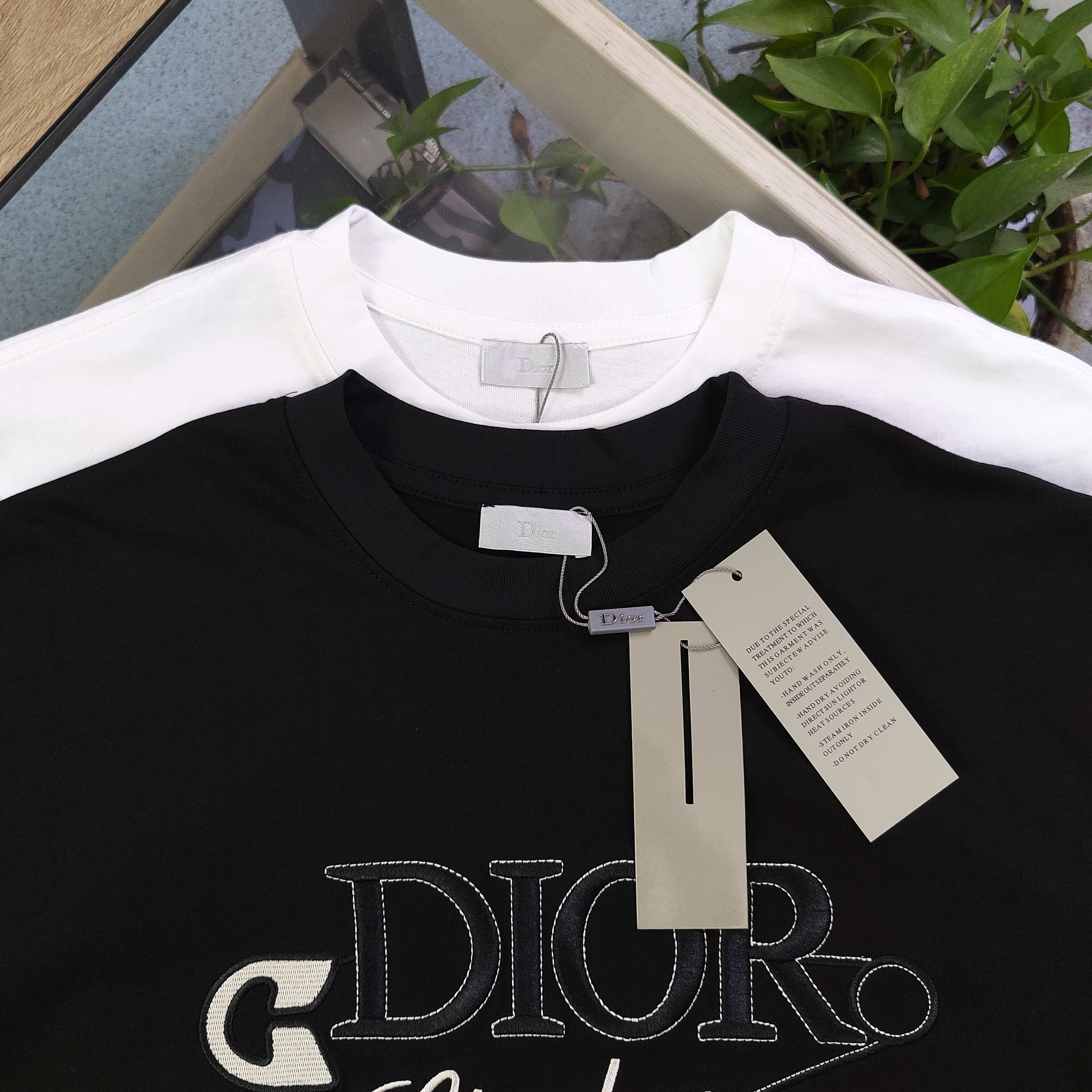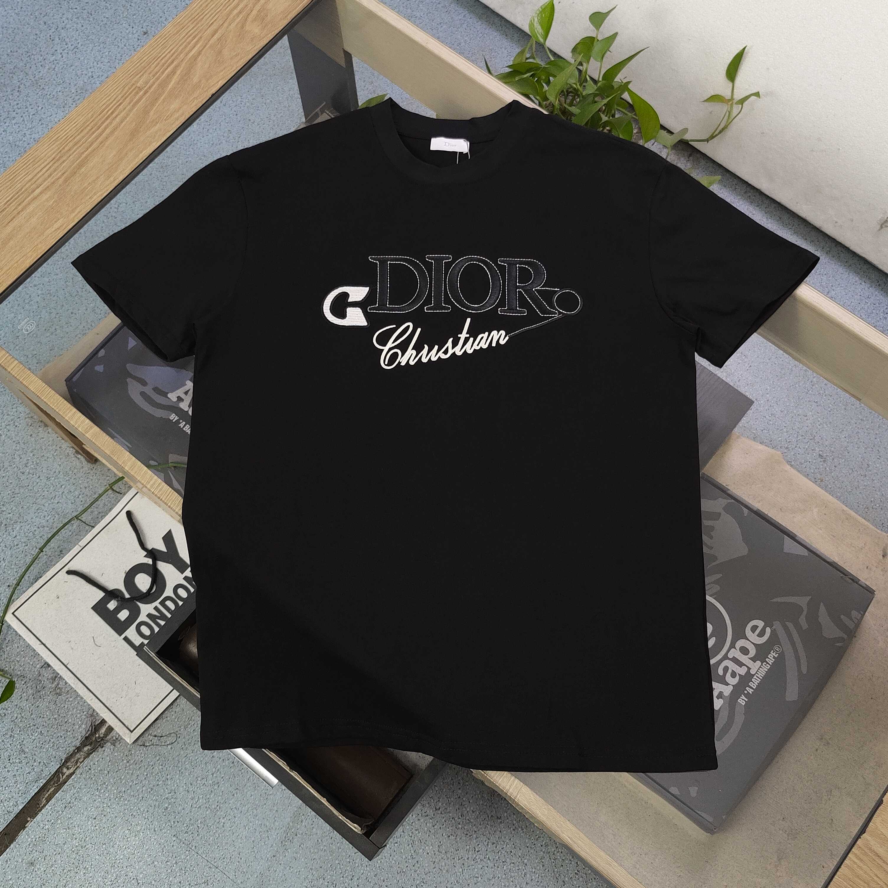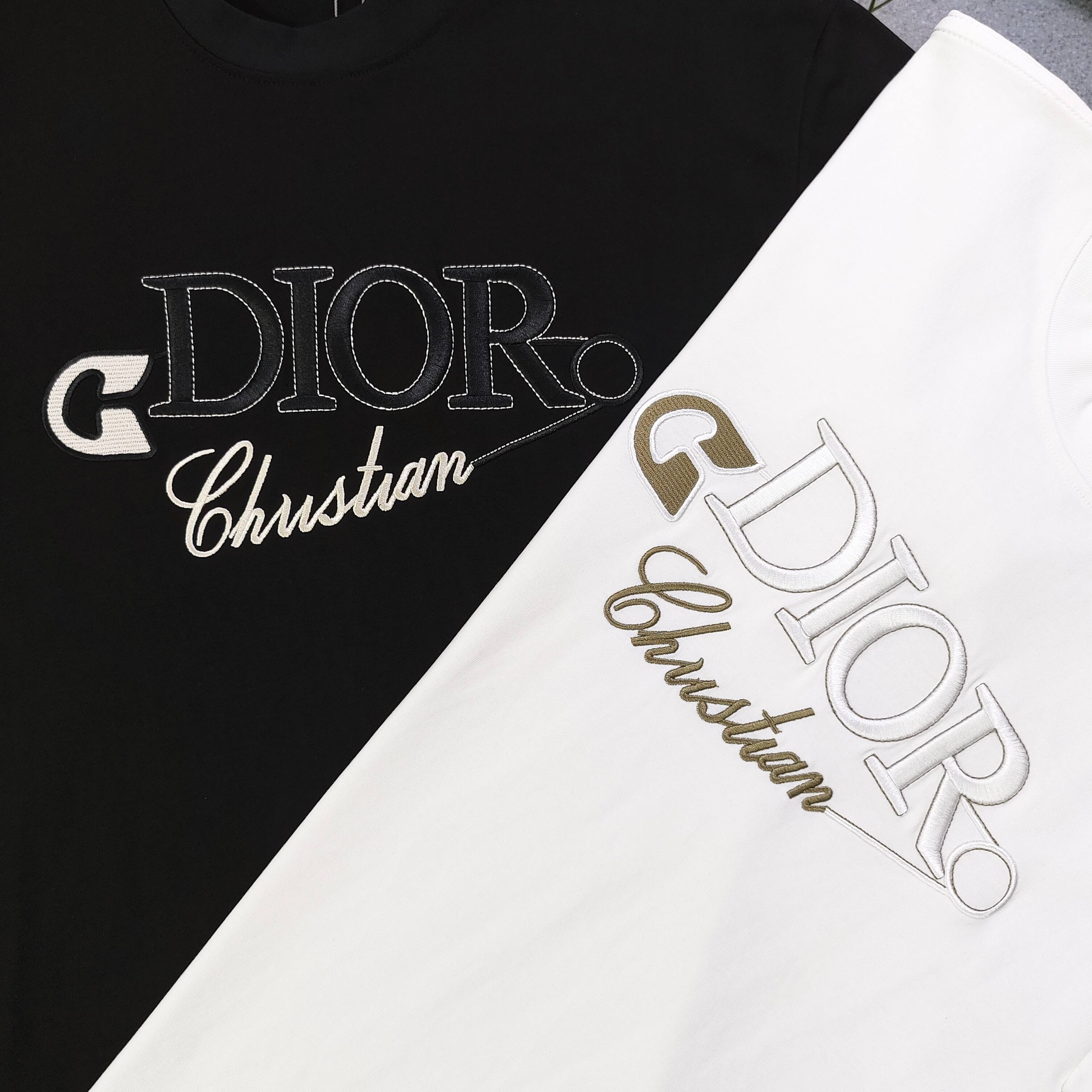 2025新款Dior迪奥刺绣字母图案logo绣花休闲情侣圆领短袖T恤 采用32支双纱精梳纯棉爽滑手感 纯棉不起球不起毛 面料厚度240克重 单件重量280克左右 质量保证 定制面料 定制定染 包浆印刷环保不开裂 欢迎对比质量 男女同款
