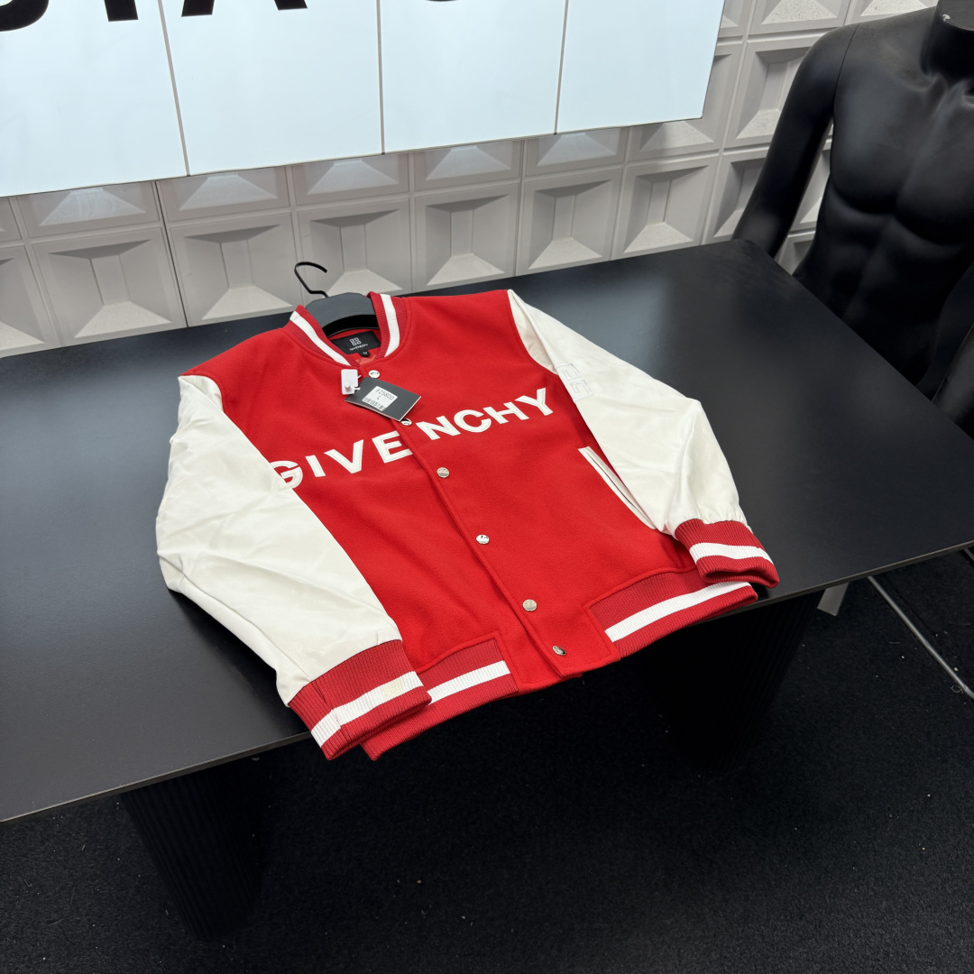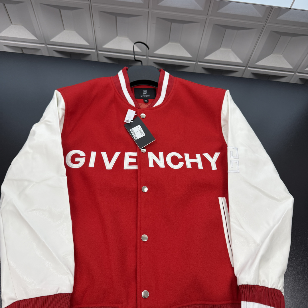 春季新款上新爆炸输出纪梵希立领棒球服外套 拼接撞色 胸前刺绣字母 袖子刺绣图案Logo 三标齐全官网一致 放大看细节原相机实物拍摄 颜色 红色 尺码 L 4xl L 80 105斤 XL 105 120斤 2XL 120 140斤 3XL 140 160斤 4XL 160 180斤