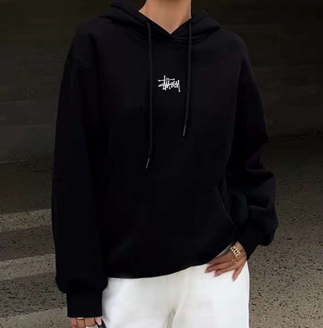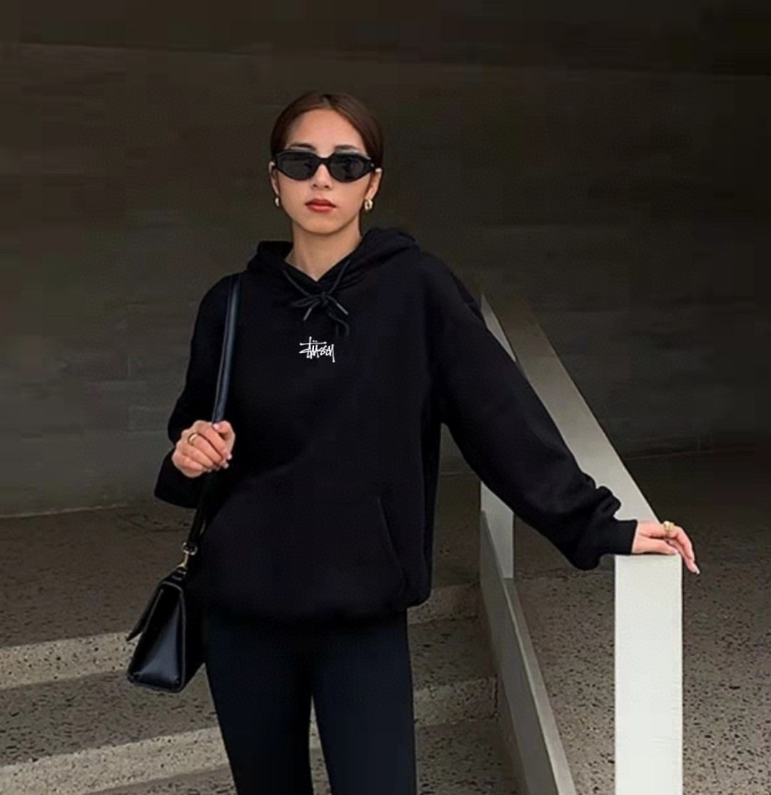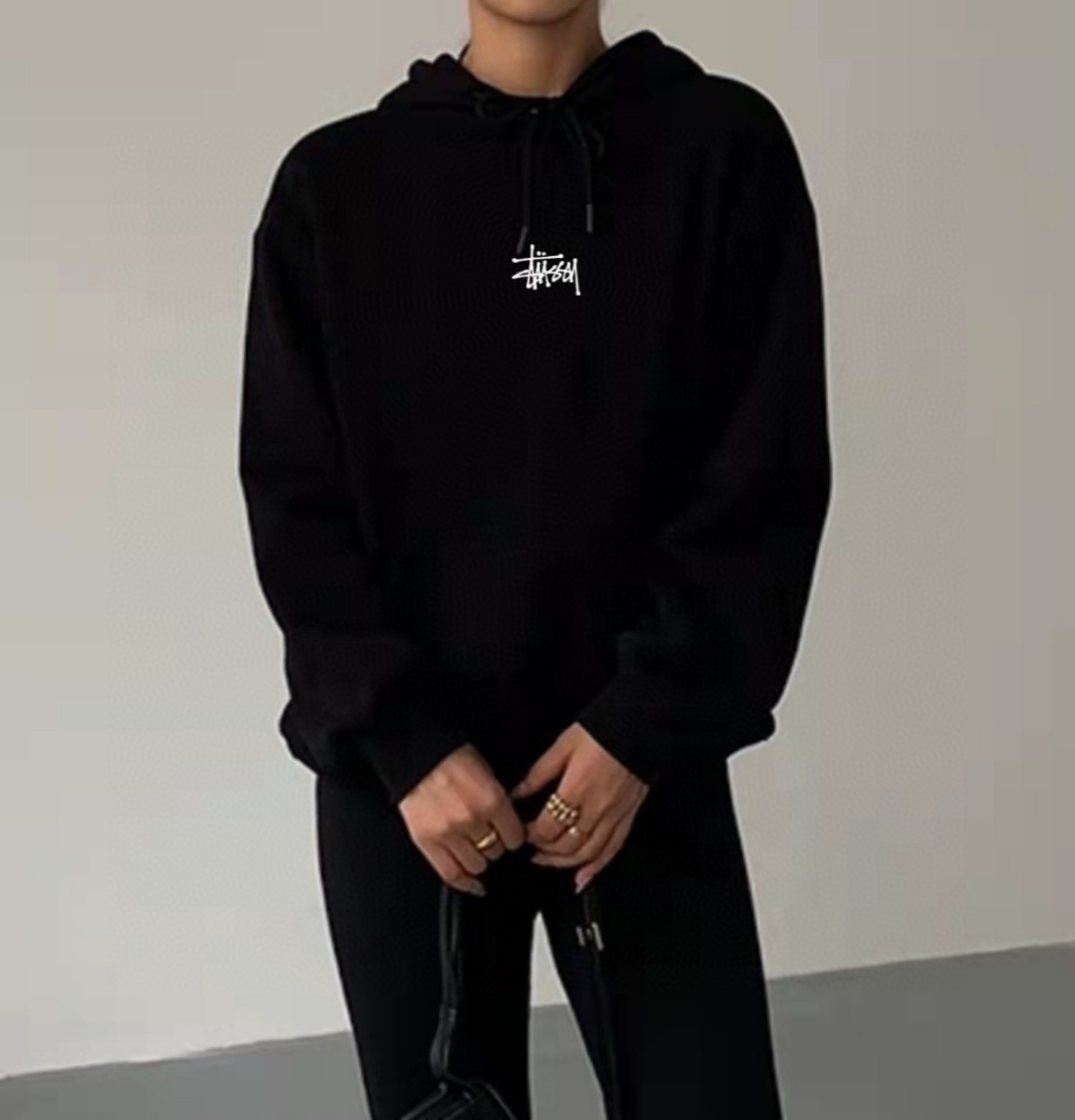 上新重工刺绣 毛圈高品质美式Stussy斯图西经典基础款高端黑色连帽卫衣外套情侣款