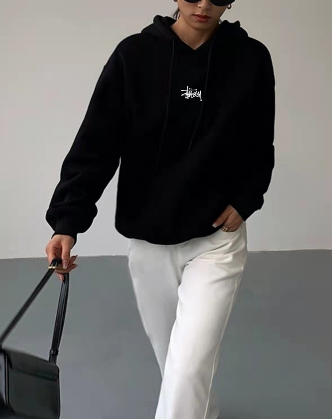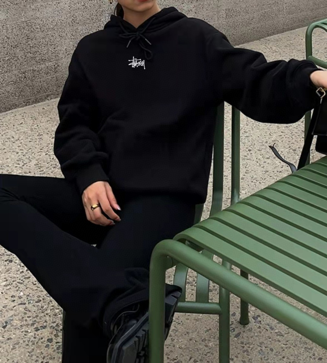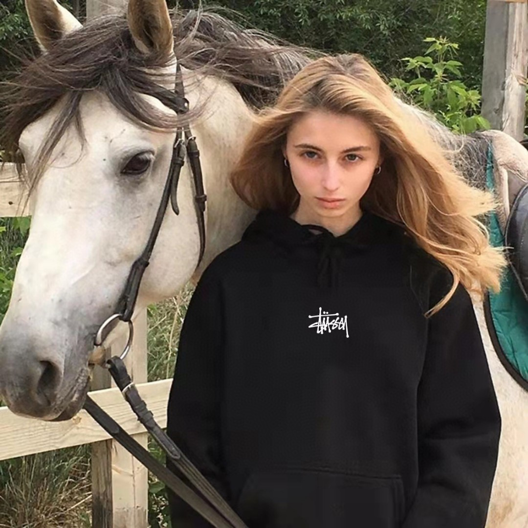 上新重工刺绣 毛圈高品质美式Stussy斯图西经典基础款高端黑色连帽卫衣外套情侣款