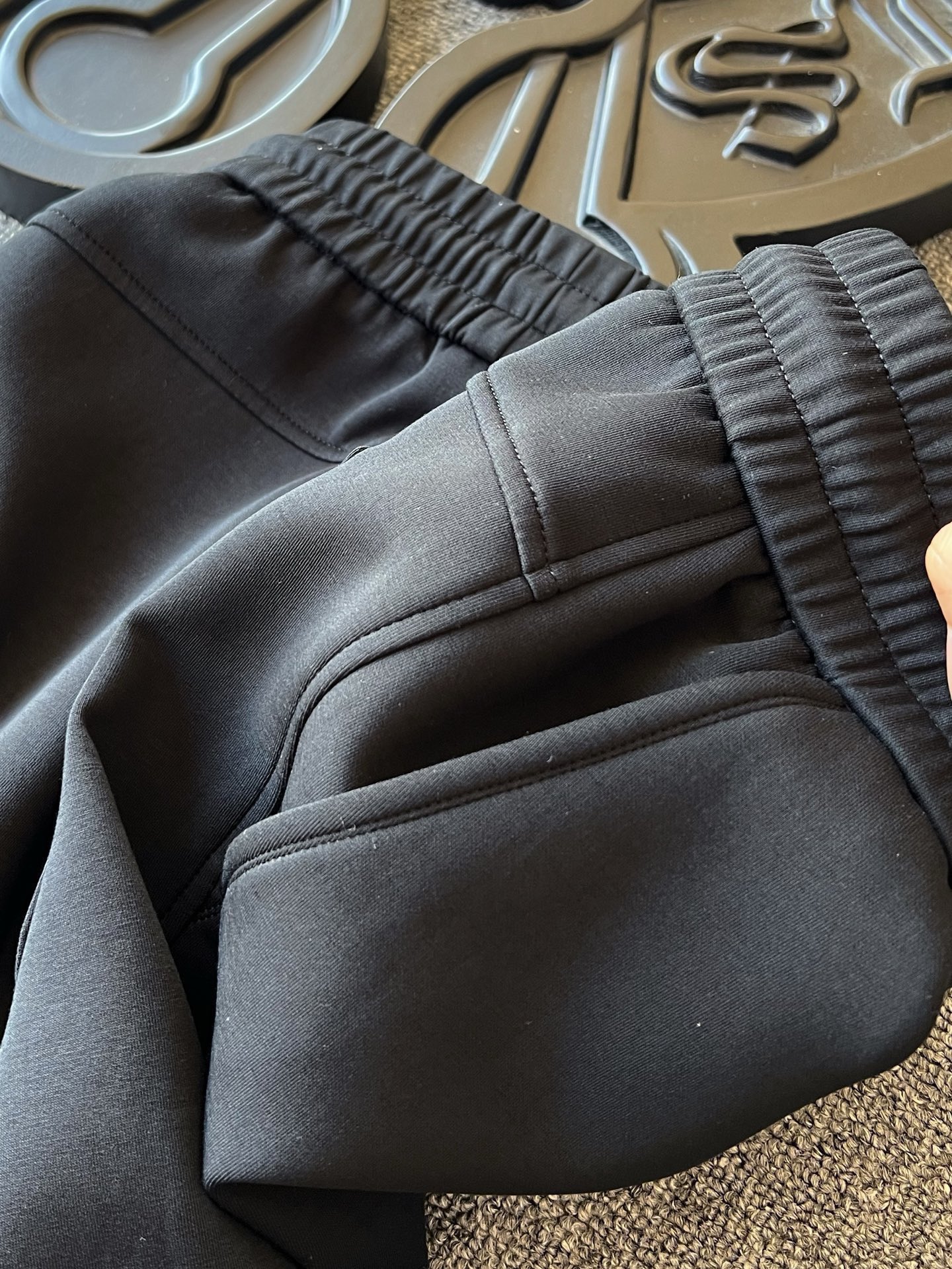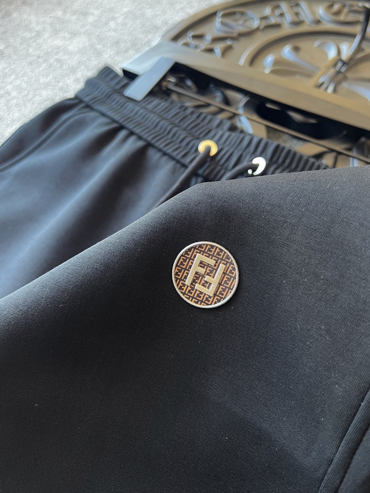 细节细节再细节 Fendi家商场新款液氨莫代尔加厚松紧裤 裤前圆形咖啡色双F满印带为基底 居中又做了浮雕3D立体双F芬迪金属丝工艺轮廓配套立体细节 十分精致 YKK代工高光金属孔以及金属头 裤后弧形口袋设计 增强立体感的同时增强实用性 内里天花板级精湛做工 无可挑剔