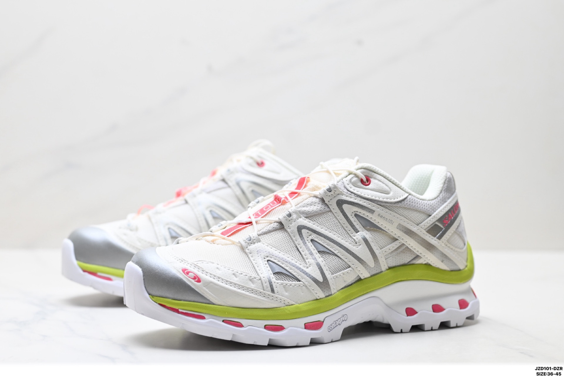鞋面采用SENSIFIT贴合技术 全方位贴合包裹脚型 鞋跟部鞋底牵引设计 提供强大的抓地性能 更适应野外崎岖不平的道路 其3D ADVANCED CHASSIS底盘 材料轻量大化 钉齿设计更具稳定性 防护性 鞋底易磨损区运用CONTAGRIP高耐磨材料 应对城市硬质路面长距离跑考验