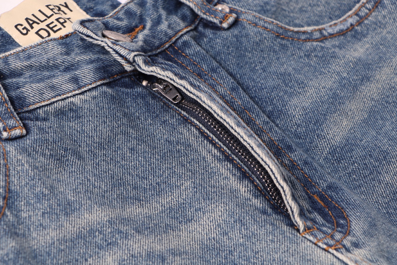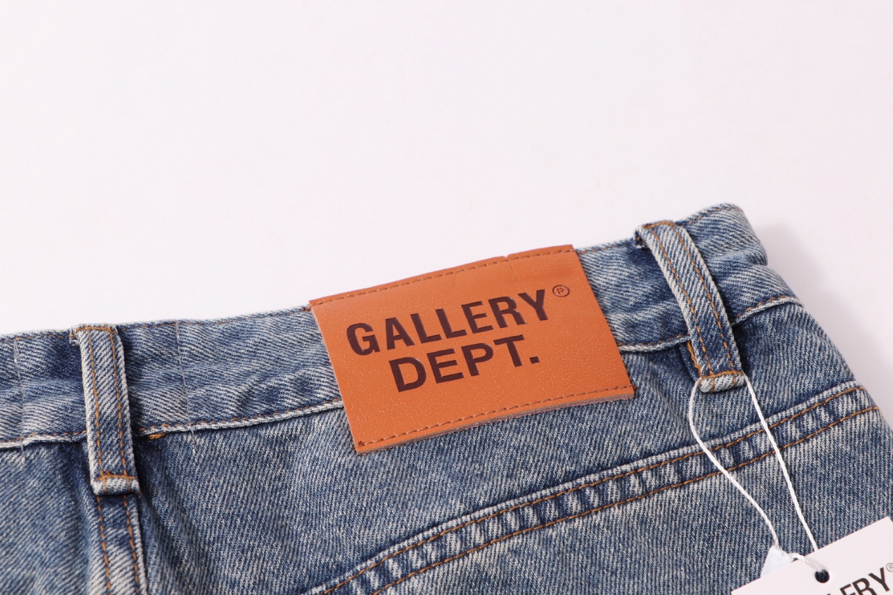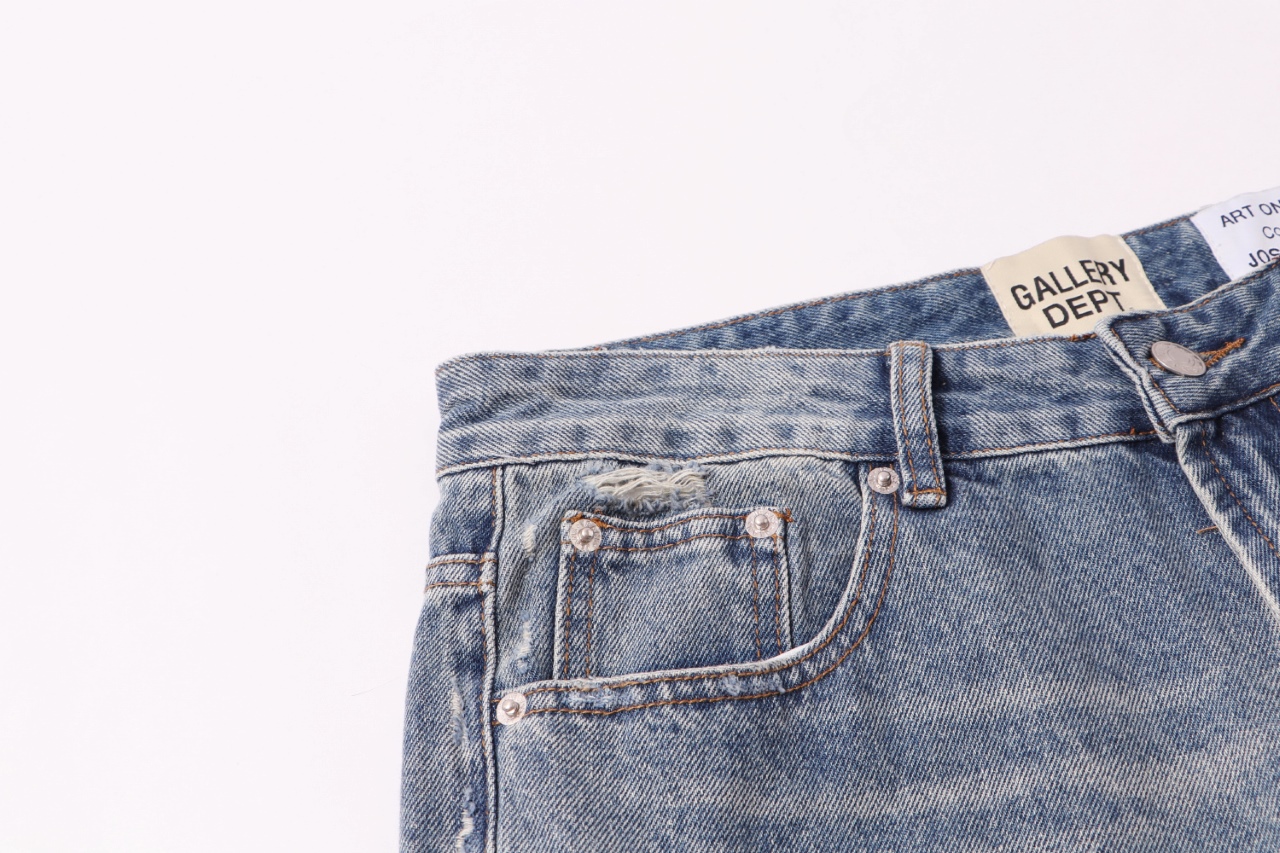 Gallery Dept新款破洞贴布流苏蓝色洗水牛仔裤微喇长裤高街美潮裤子休闲百搭长裤 洗水蓝色 S XL