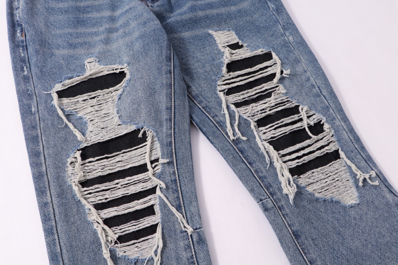 125170168 - Gallery Dept新款破洞贴布流苏蓝色洗水牛仔裤微喇长 579820