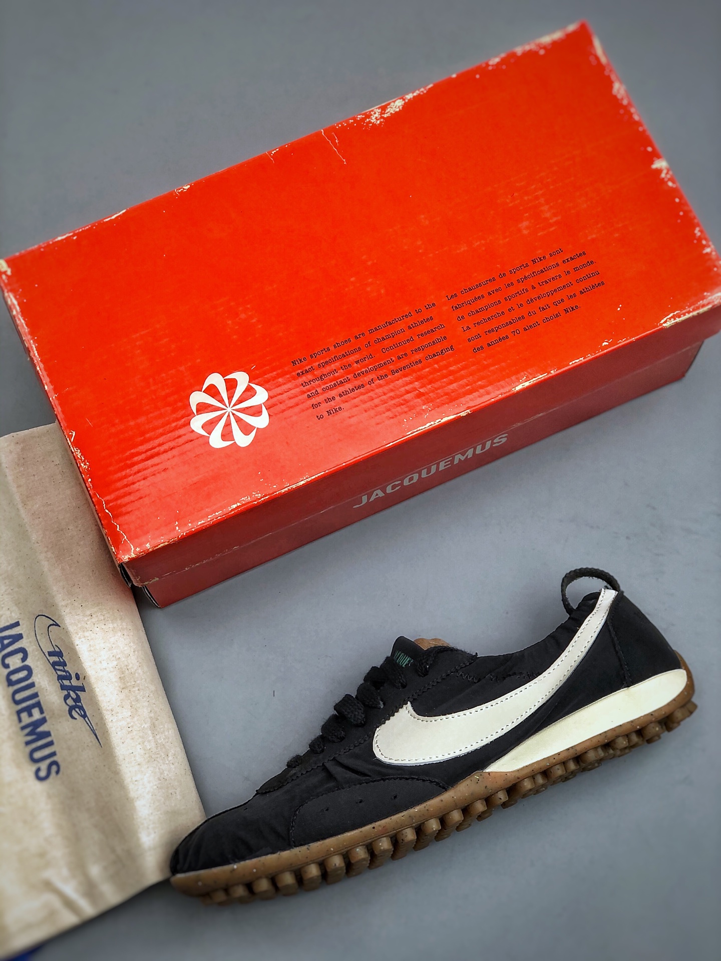 NIKE W JACQUEMUS MOON SHOE SP 耐克 柔软舒适防滑耐磨 低帮休闲板鞋 欧美 走秀 款英伦复古 翘式鞋头设计 响应灵活 采用经典鞋型 融入全新细节点缀 整体简约且富有质感 鞋底耐磨材质搭配丰富的防滑底纹设计可平稳抓地 不易打滑 货号 HV8547 001 尺码 36 45 半