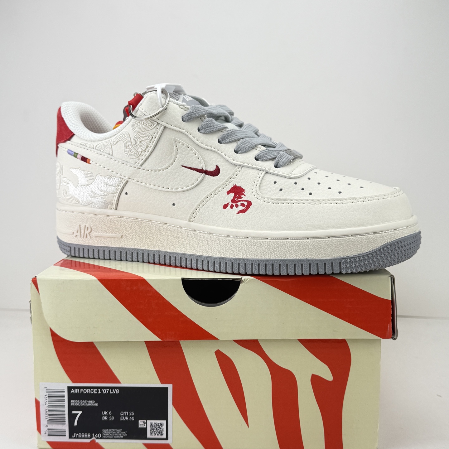 海外限量发售 公司级NIke Air Force 1 07 Low 马年限定联名 灰白红 空军一号 低帮 运动鞋 休闲鞋 折边针车 工艺难度大 原楦头原纸板 原装鞋盒 定制五金配件 内置全掌气垫 原厂鞋底 货号 JY6988 140 Size 36 36 5 37 5 38 38 5 39 40 40 5 41 42 42 5 43 44 44 5 45