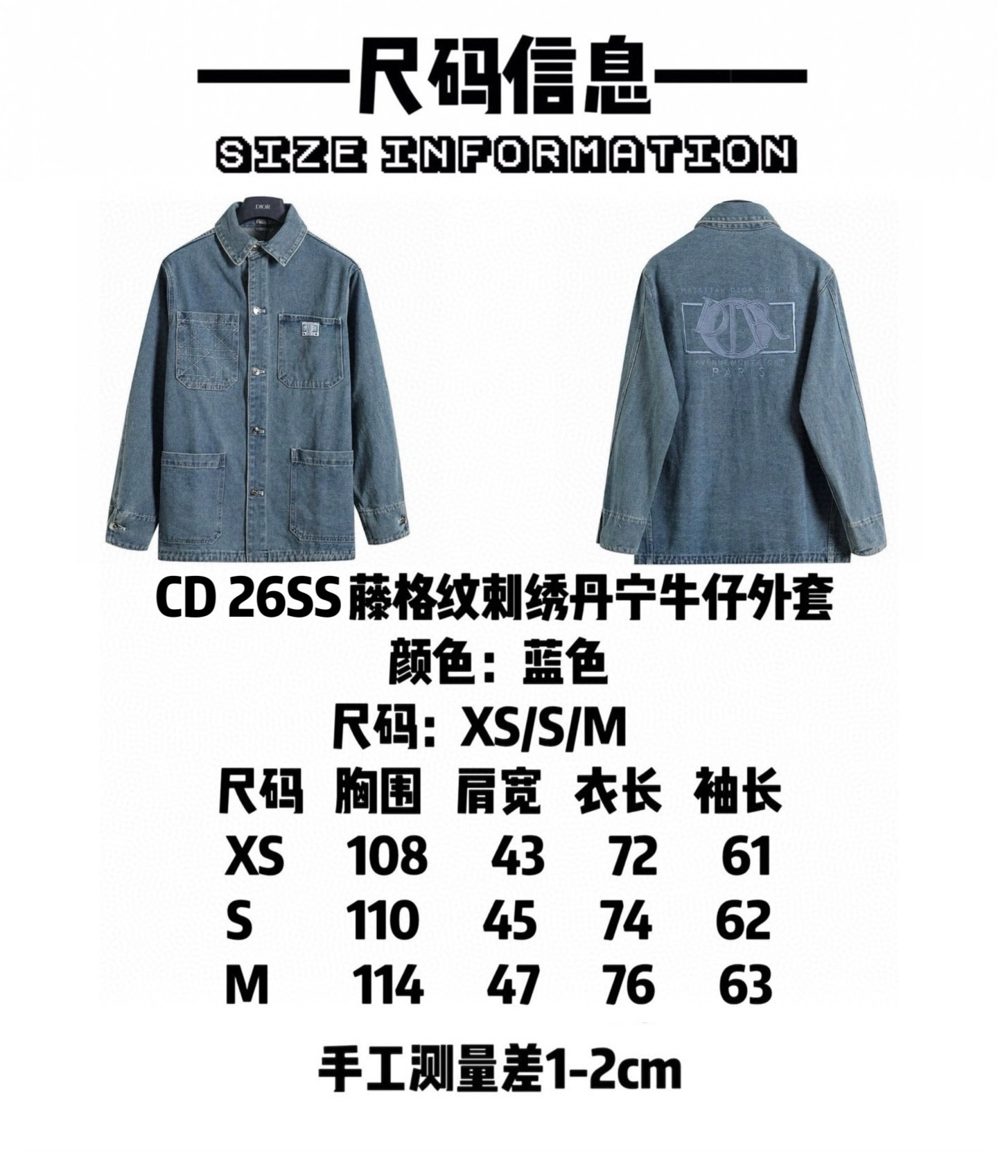迪奥 𝘾𝙝𝙧𝙞𝙨𝙩𝙞𝙖𝙣 𝘿𝙞𝙤𝙧 CD 26SS 藤格纹刺绣丹宁牛仔外套