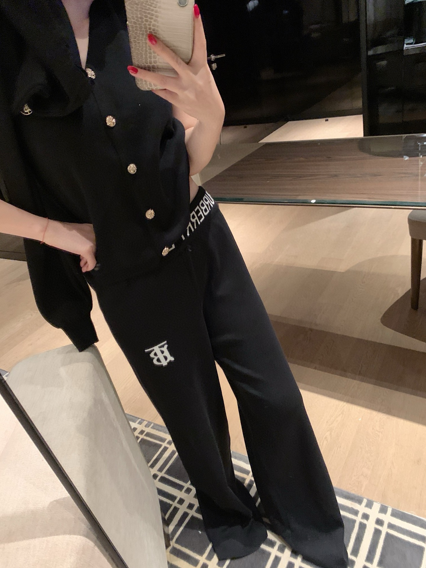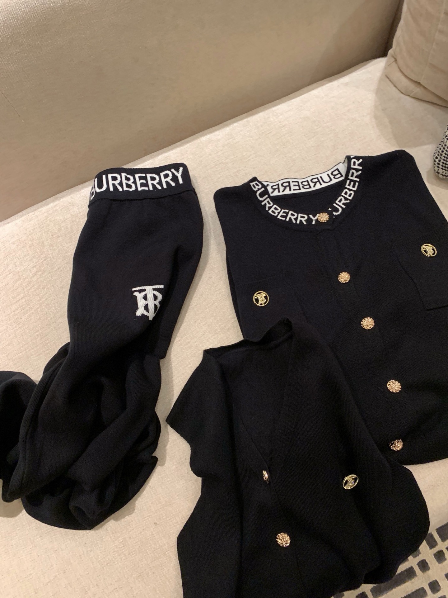 Burberry 巴宝莉BBR字母logo提花定制胸针背心开衫长裤三件套针织套装
