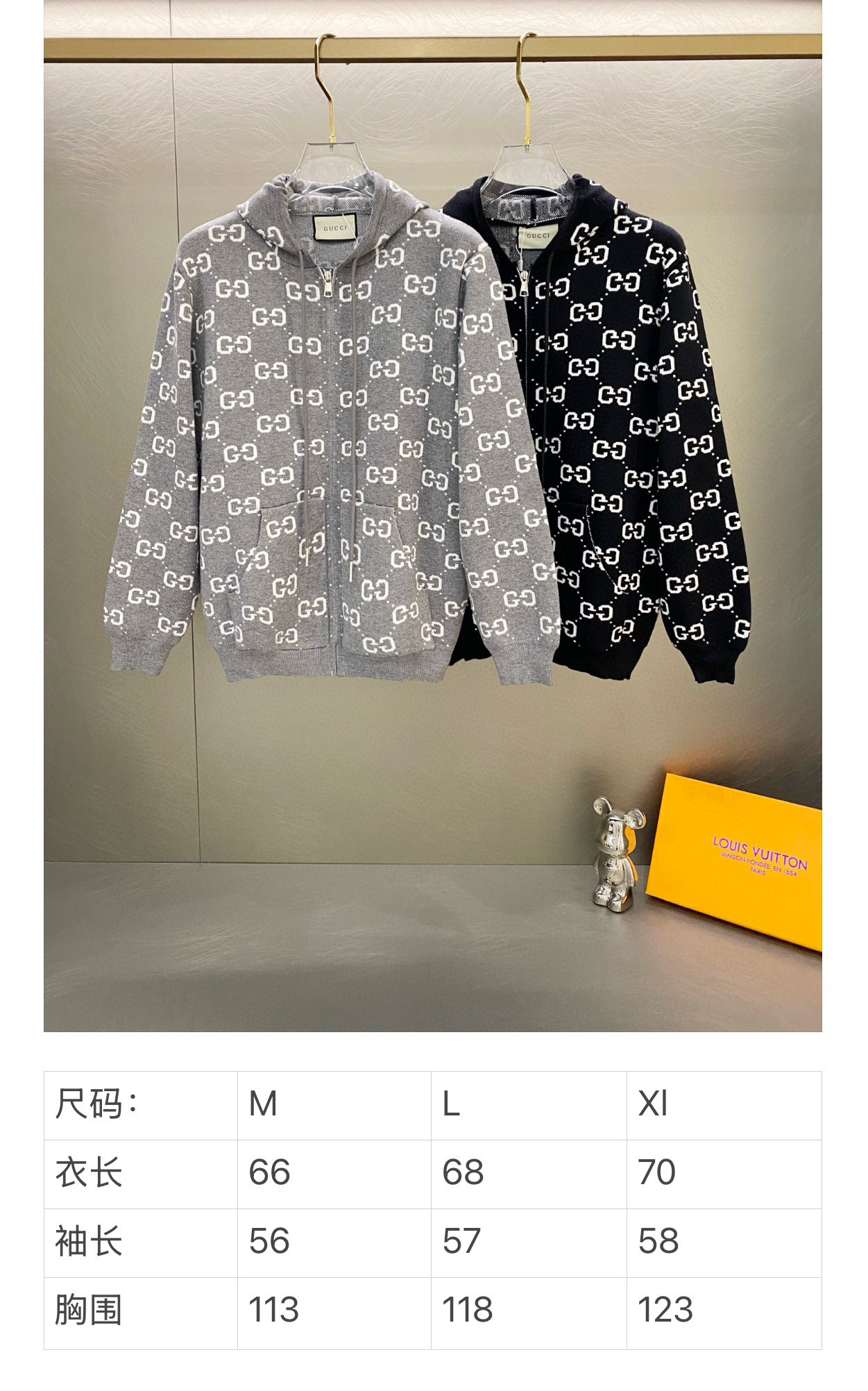 125158697 - Gucci古驰 2025新款满印字母logo情侣拉链针织连帽 320654