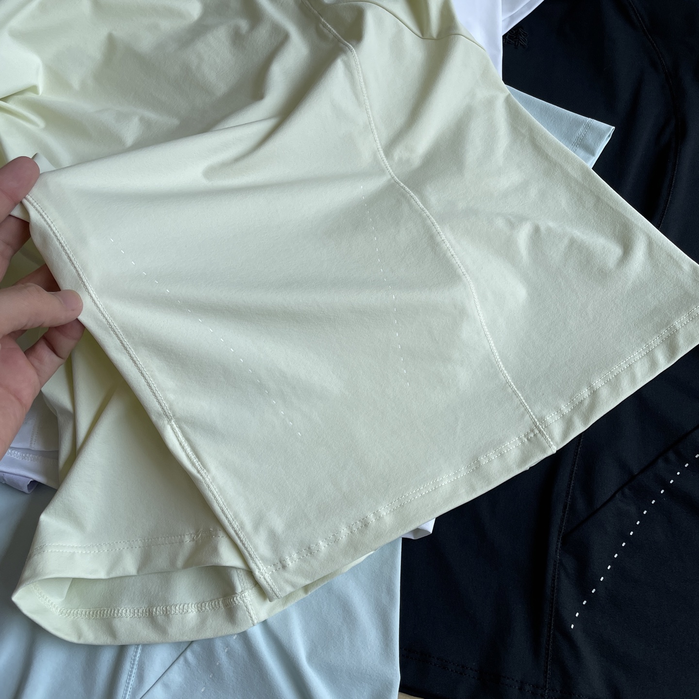 袖身拼接处采用四针六线麻丝工艺 稳固衣型 久洗不变形 腋下走线加宽 为活动增添余量