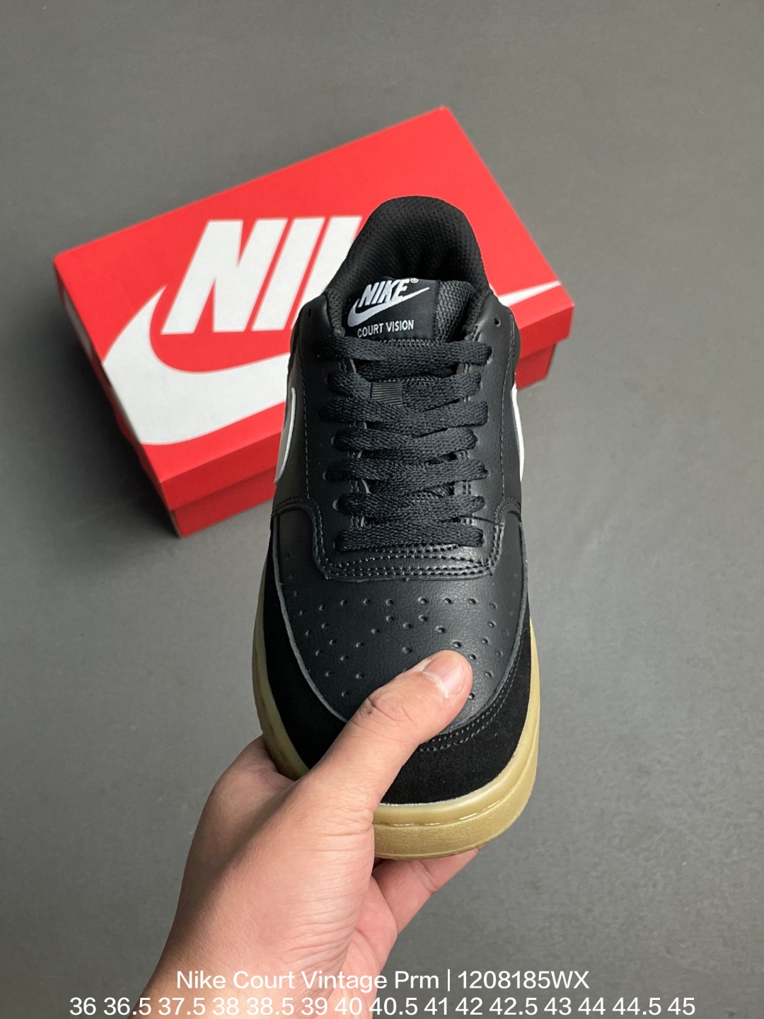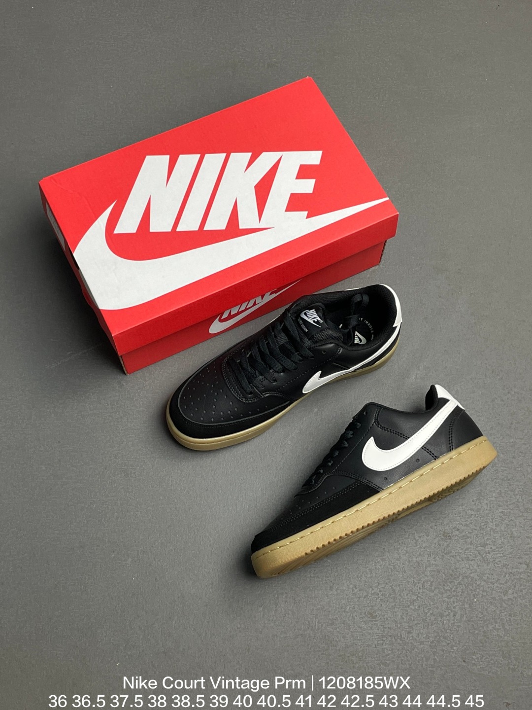 Nike 耐克 采用粒面二层皮拼接透气网布材质鞋面 橡胶外底很好的耐磨性和抓地力经典校园配色 耐克Nike Court Vintage Prm学院系列休闲运动板鞋