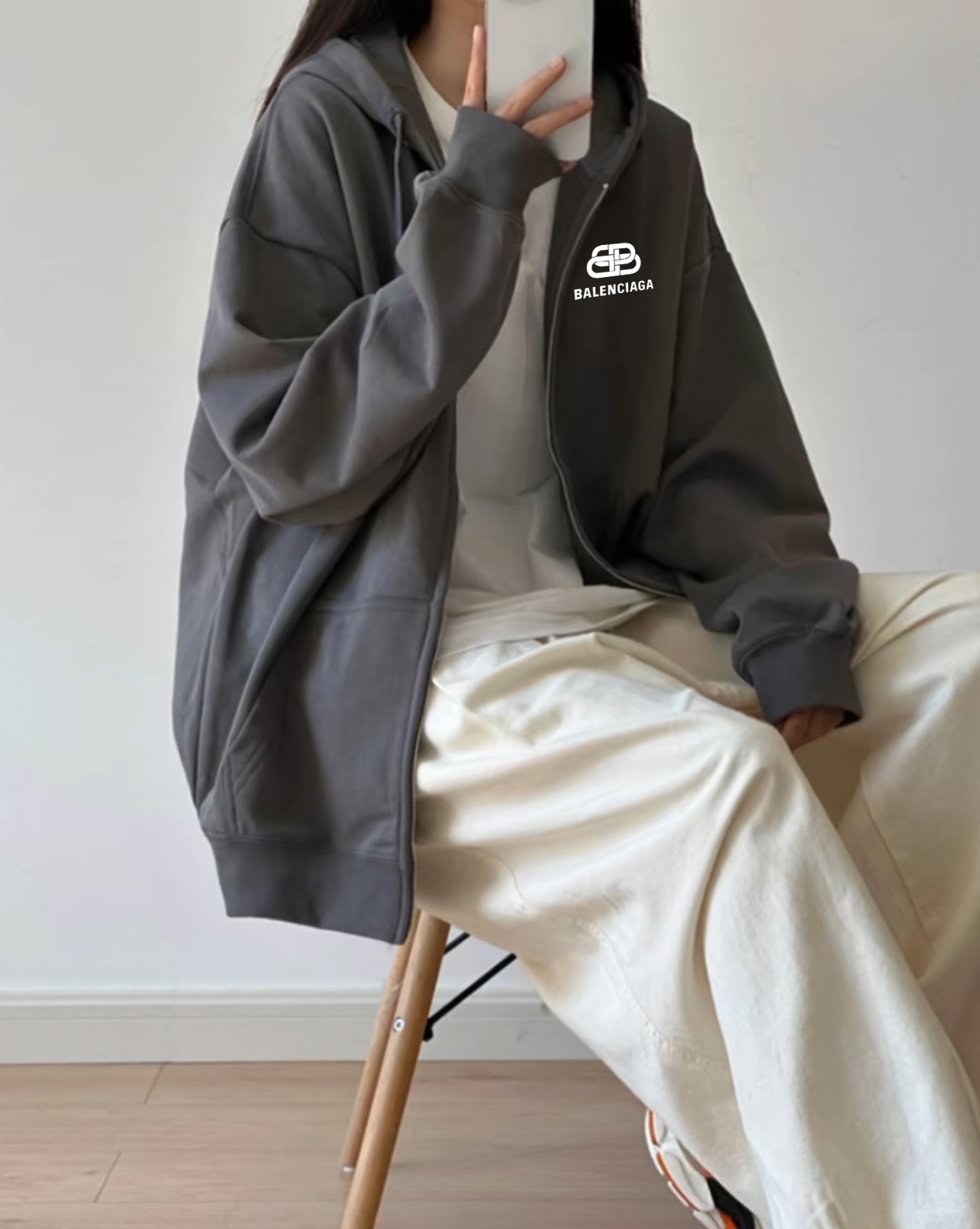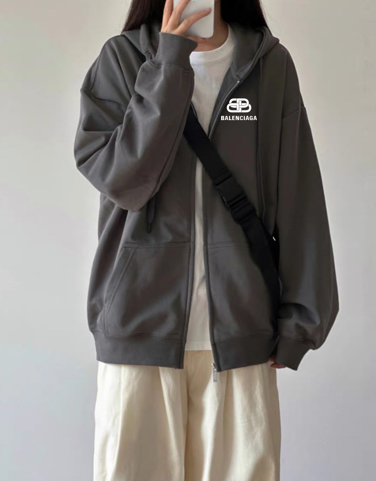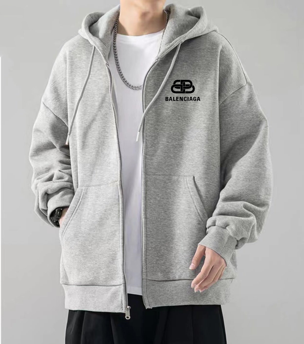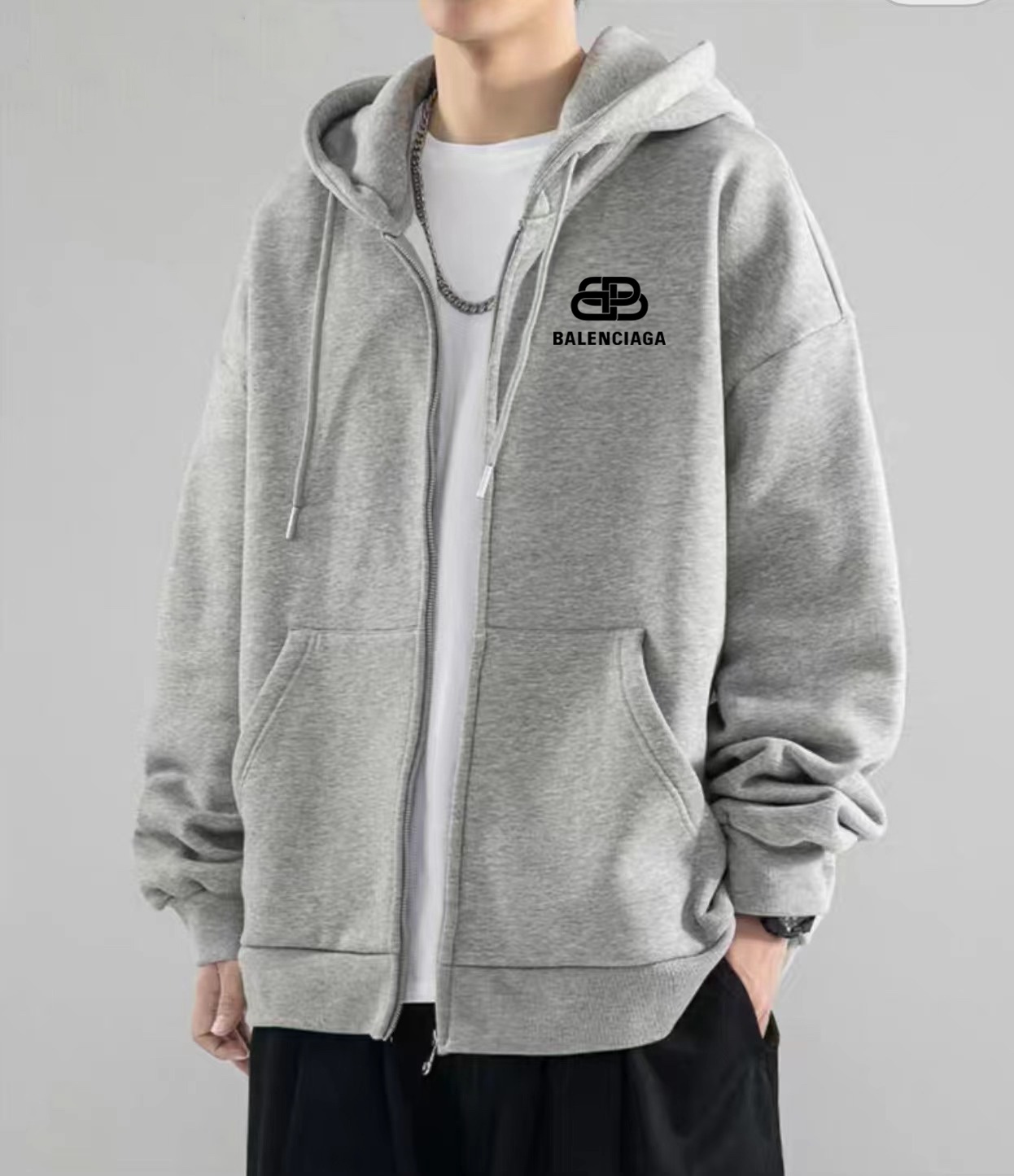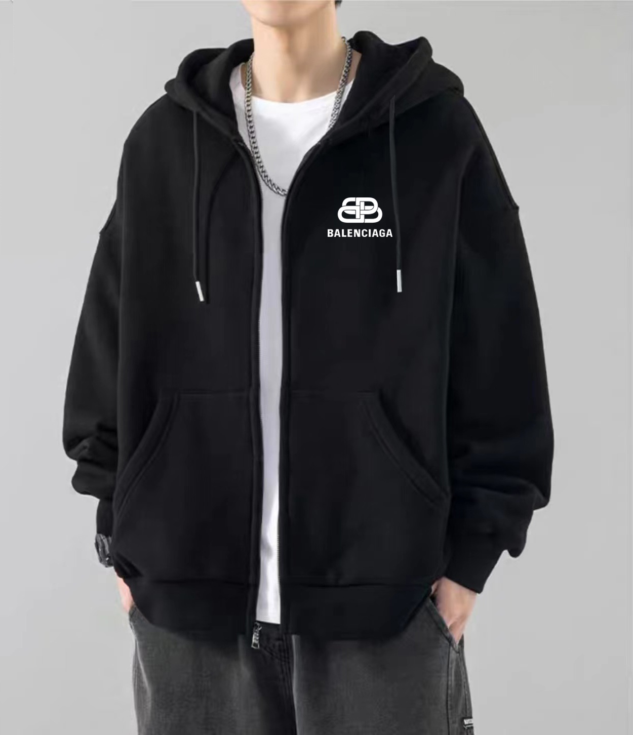 Balenciaga巴黎世家锁扣冬季加绒加厚开衫拉链连帽卫衣外套