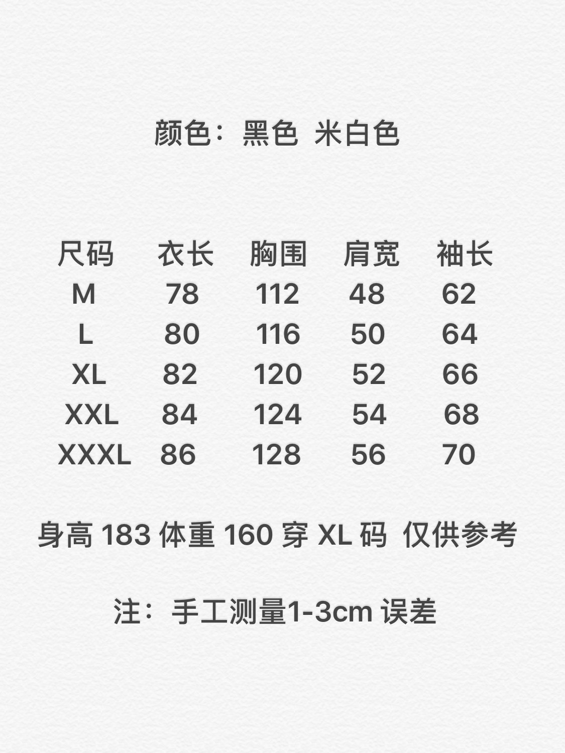 尺码 M 3XL