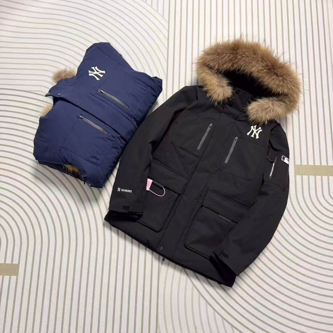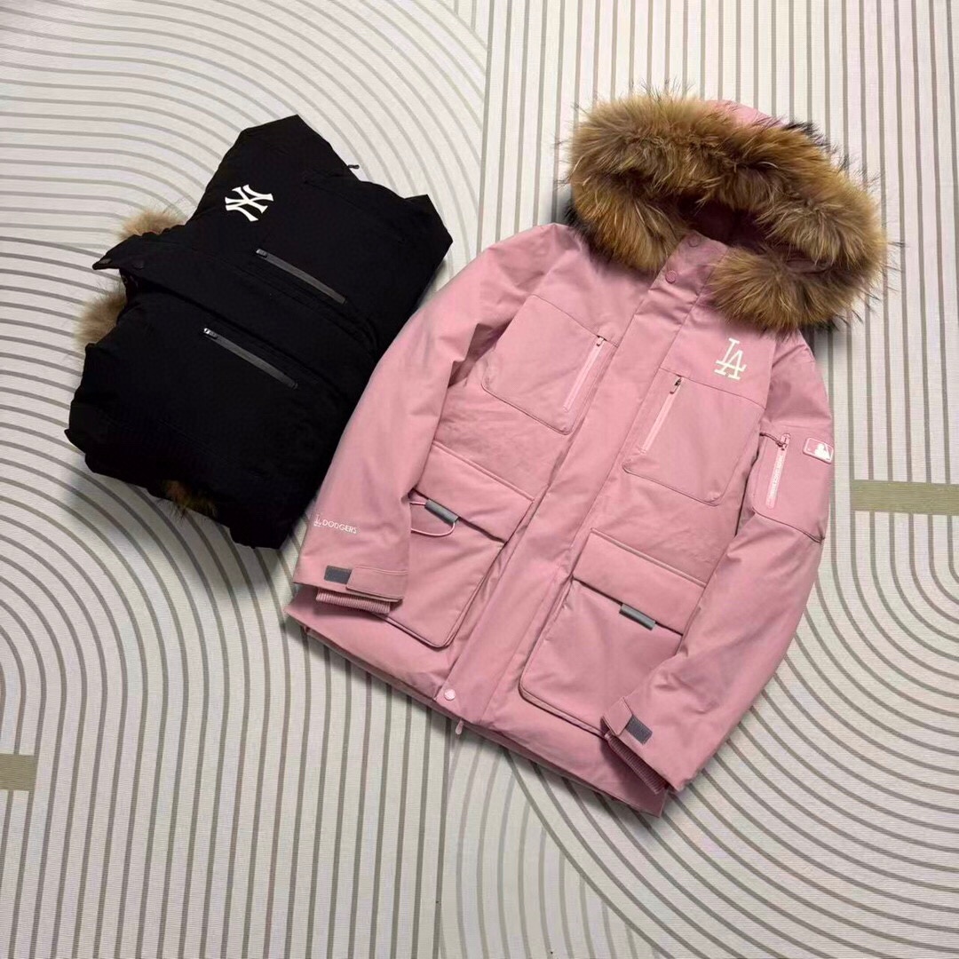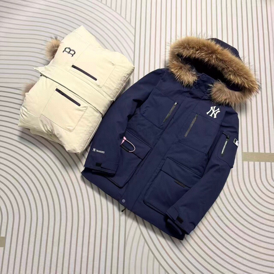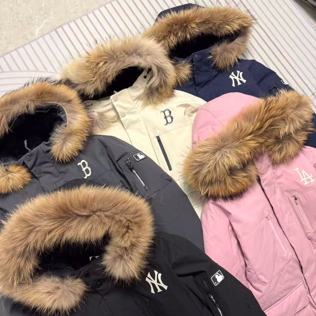 最新款爆款推荐MLB 洋基队张凌赫同款 冬季男女分码保暖NO 1五色色防风保暖顶级户外款官方加厚工装风真毛领羽绒服
