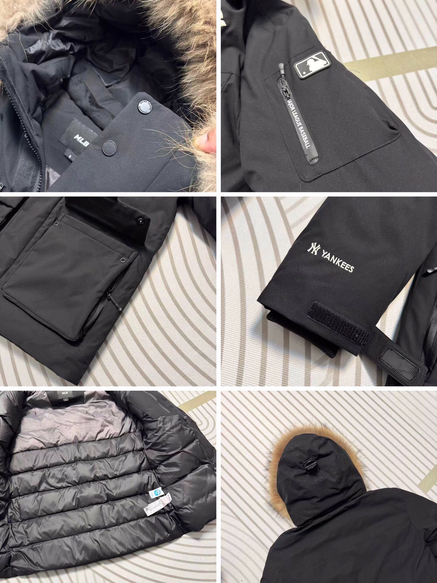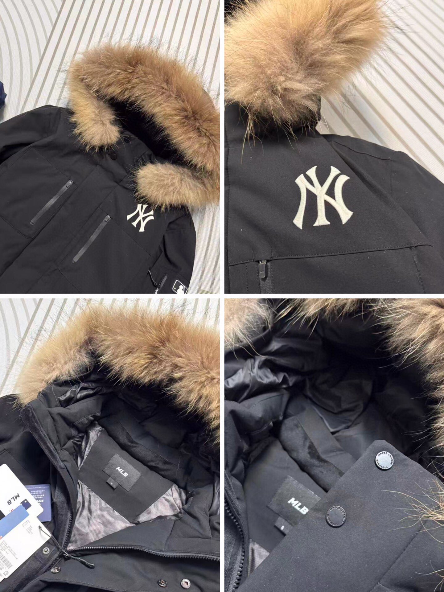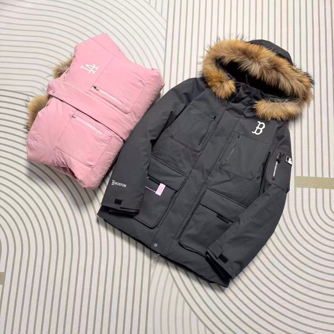 最新款爆款推荐MLB 洋基队张凌赫同款 冬季男女分码保暖NO 1五色色防风保暖顶级户外款官方加厚工装风真毛领羽绒服