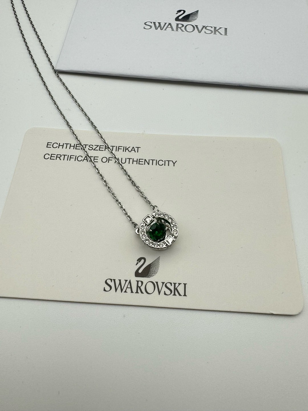 SWAROVSKI施华洛世奇跳动的心项链 配全套包装 款407 施华洛世奇原厂订单 深圳出口港货 仅此一批 礼物准备好了吗 普通款小天鹅已经烂大街了 强力安利这一款 比天鹅更让人加欲罢不能 无处不在的细节之美 气质小巧 还有一丢丢小性感 是你首饰盒里最缺的一款 象征优雅及高贵是施华洛世奇首饰的标志 自信 象征着一心一意 代表珍贵而永恒的爱情 这款镀白金色的项链 以 跃动水晶 概念为设计灵感 密镶仿水晶的金属饰框内 镶有一颗悬浮似的圆形仿水晶 既可为日间造型注入活泼光彩 亦是今季的必备首饰 随附一条饰链 带上它尽显风情 让你在每个场合更添优雅 链长 45CM可调节 颜色 银色白钻 银色蓝钻 银色绿钻 玫瑰金红钻 黄金白钻 材质 合成立方氧化锆 镀铑 仿水晶
