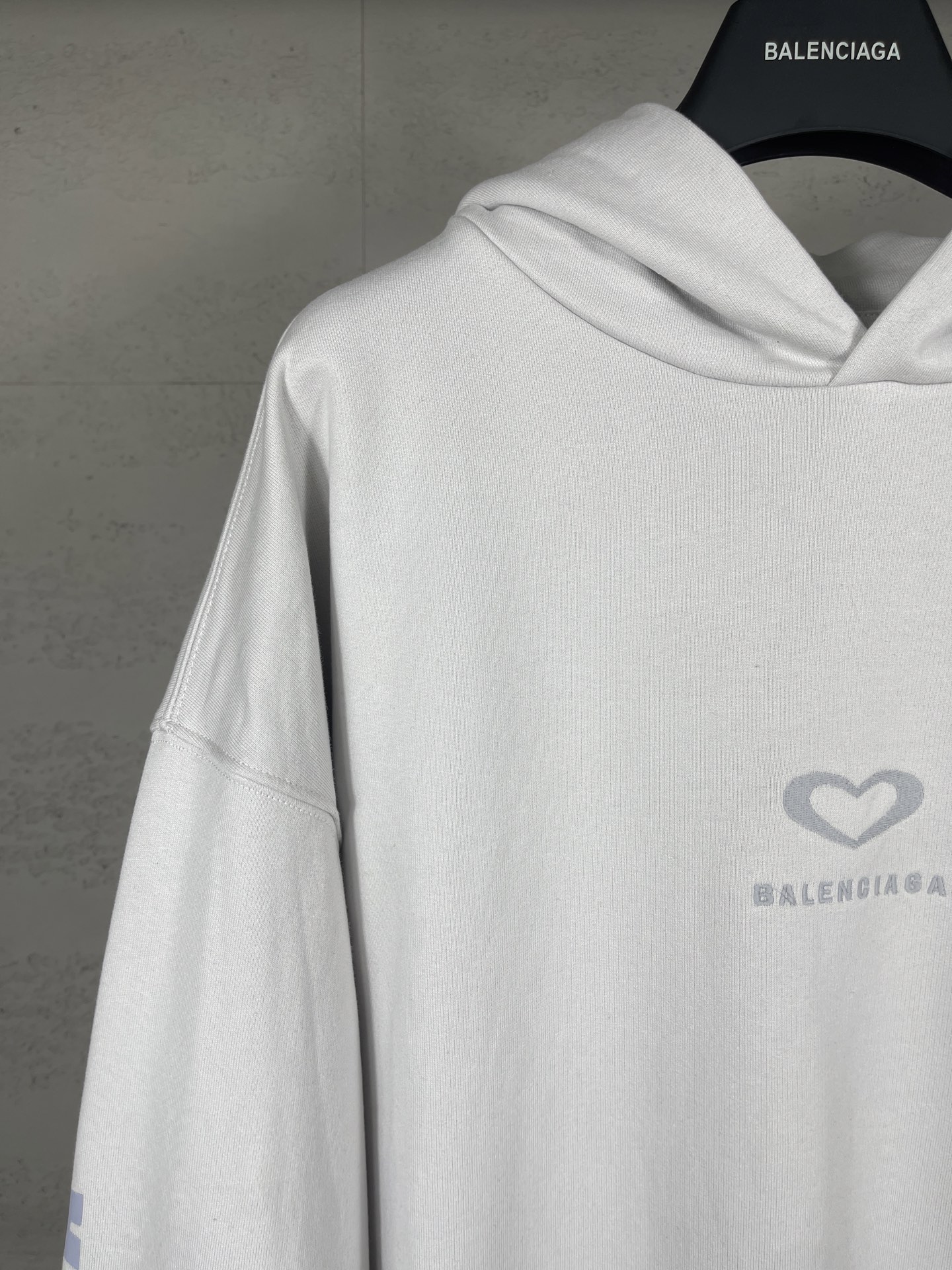 实拍图 顶级版本 官网品质 BALENCI GA 巴黎 SS25最新款 巴黎七夕情人节限定款 前面爱心LOGO刺绣后面爱心LOGO印花连帽卫衣 砖柜同步 第一时间正品研制 欢迎对比 面料采用巴黎ZP定织定染全棉大卫衣 克重460克 布面干净 布纹清晰 柔软舒适 螺纹釆用定染无色差 绣花采用进口田岛绣花机刺绣 印花采用环保进口胶桨 字母清晰 效果立体 版型釆用OS宽松落肩版型 男女同款
