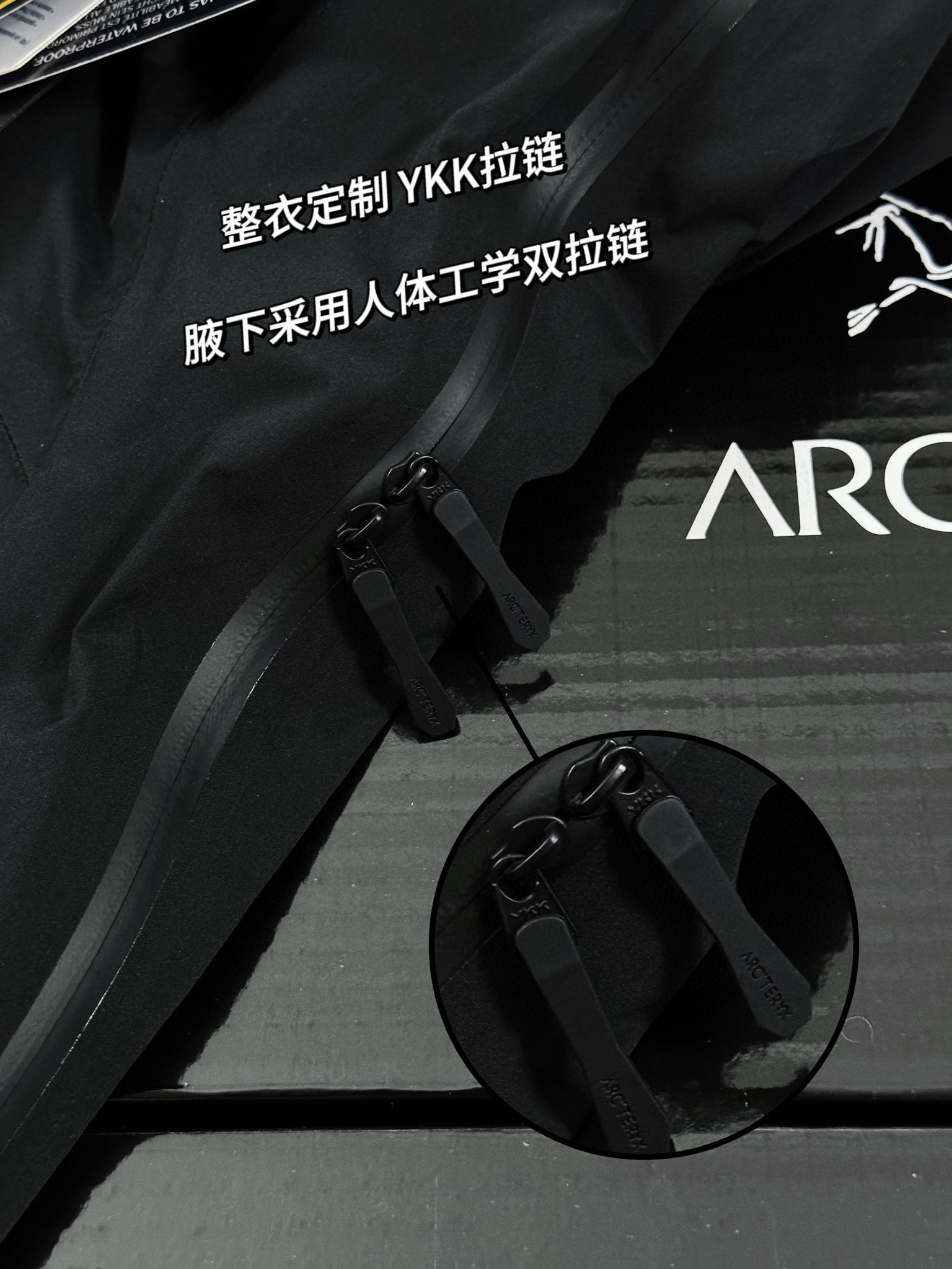 工艺 原版分解 从裁剪 拼接 到缝制工艺完全原版一比一 网眼PowderGuard腋下通风口 便于通风散热 网状WaterTight主拉链 WaterTight外侧拉链 W微织带拉链片 腋下拉链配PowderGuard儡眼底料 整衣全部贴带接缝 防风雨更佳 GORE TEX三层结构 光滑内面面料 方便分层穿着立体整形 更合身舒适