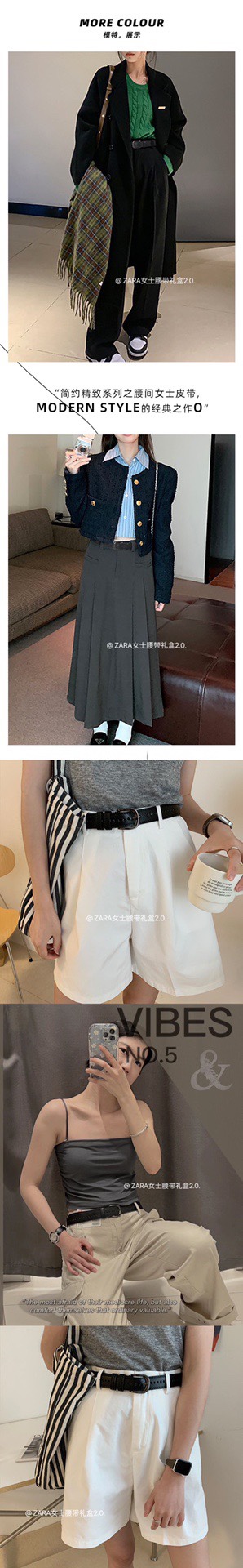 漂亮女孩子怎么能没有一条腰带捏 ZARA女士腰带礼盒2 0腰带 搭配出来的效果可盐可甜 款式怎么搭配都好看 配裤子 裙子 配衣服都可 百搭型极强 简单又复古 还带有一丝高级感