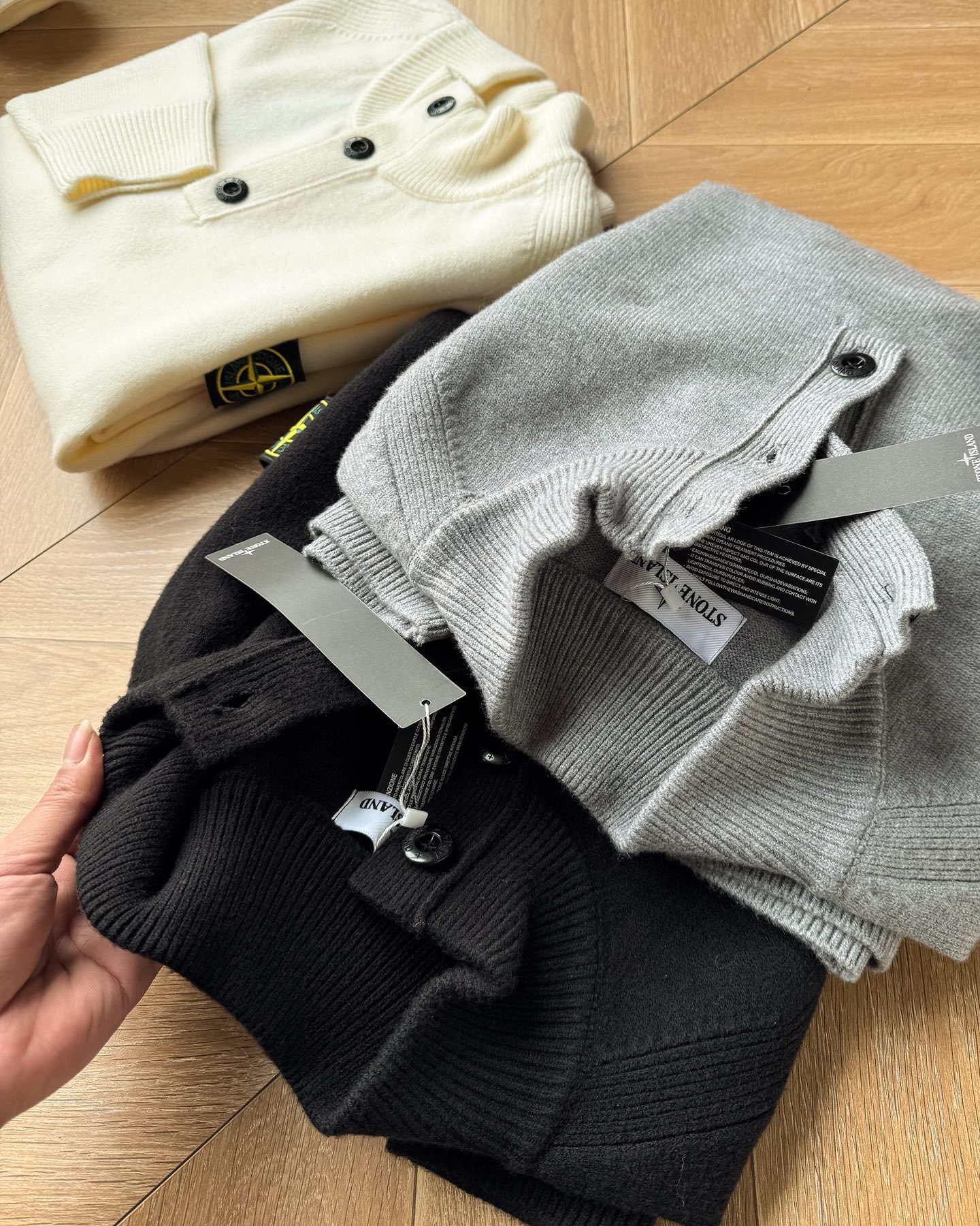 2026新品 Stone Island 石头岛经典半拉三粒扣款针织套头毛衣 男女同款 宽松版型 包容性强 细节里全是品质感 单穿慵懒 叠穿时髦 轻松穿出法式松弛氛围 定制经典罗盘毛毡贴布 可拆卸 整体基础宽版型 细节满满 定制三标 纽扣全定制logo 袖标在一次次调试中与细节死磕 让每一处都朝着心中的完美无限趋近 克重很高 拿在手上份量十足 单穿内搭都可 三色可选 三标齐全