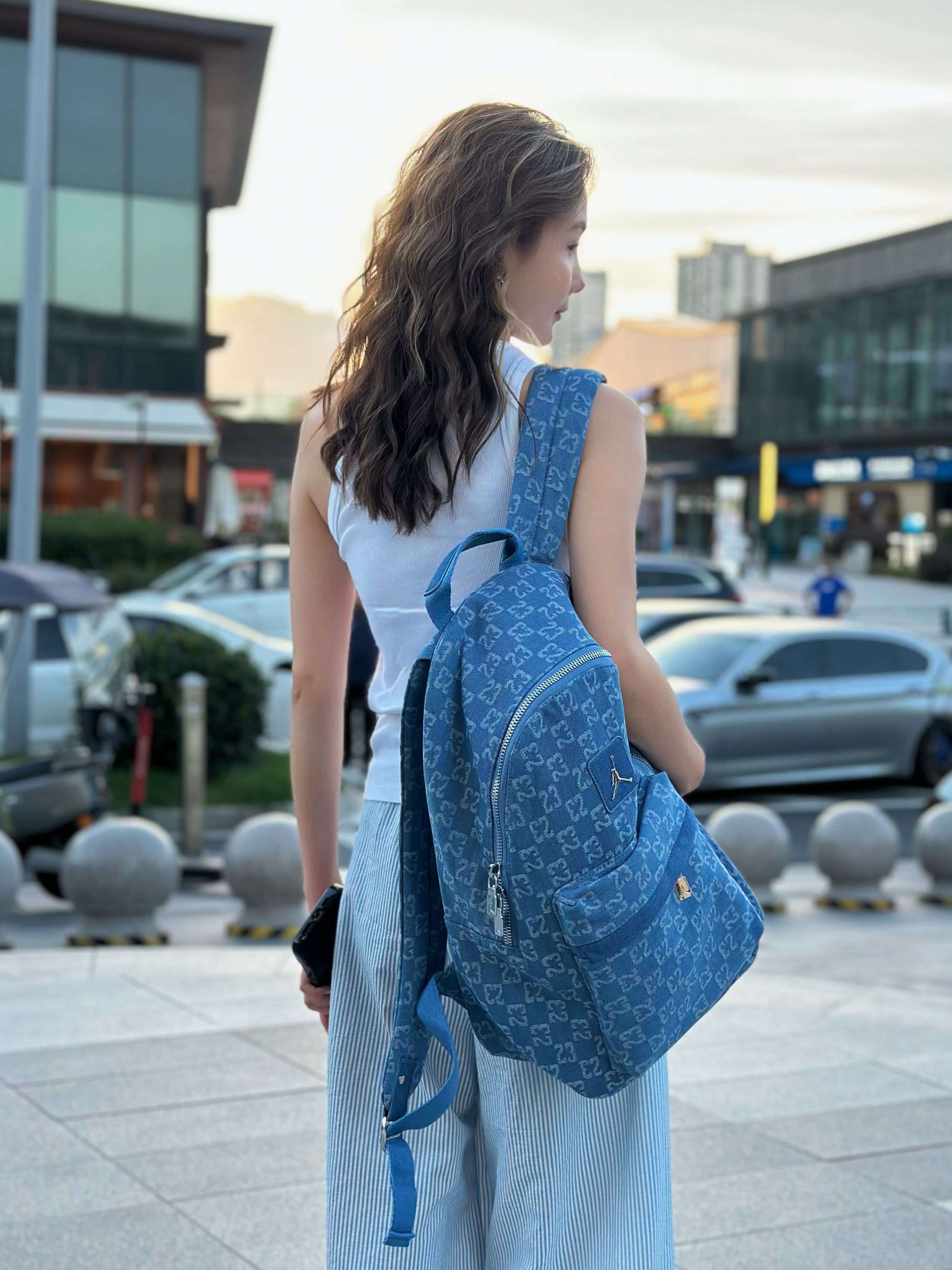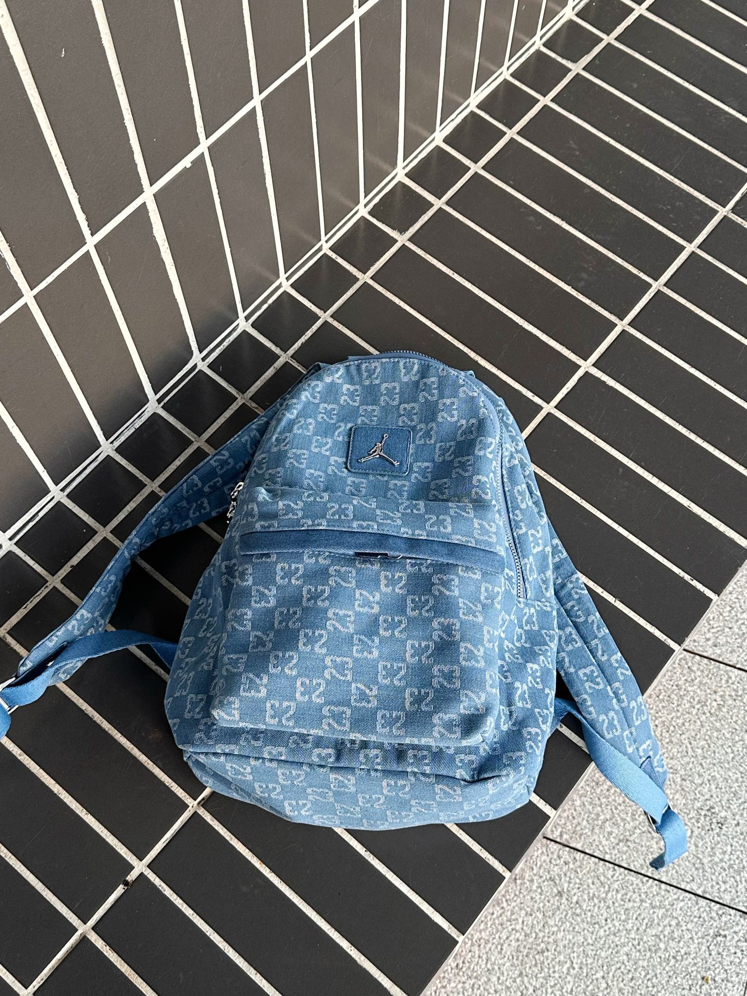 AJ乔丹老花牛仔满印双肩包单肩包学生书包男女同款 包包用料 488168
