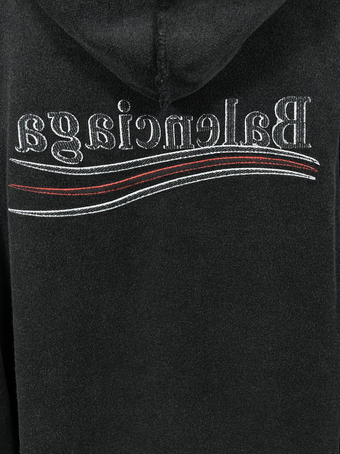 实拍图 顶级版本 官网品质 BALENCI GA 巴黎 2025新款 经典可乐海浪花LOGO反面刺绣洗水做旧磨烂连帽卫衣 成衣釆用反面缝合 成衣洗水 设计感十足 欢迎对比