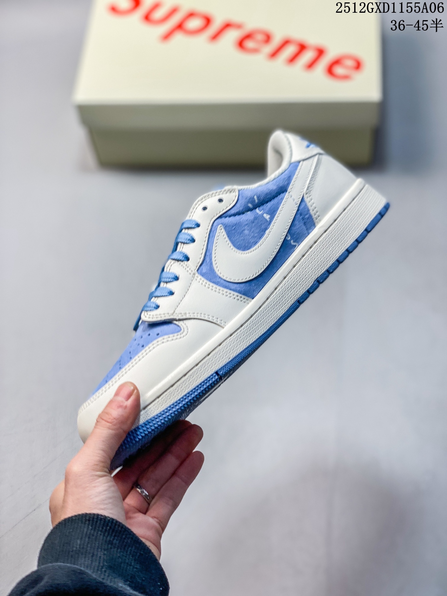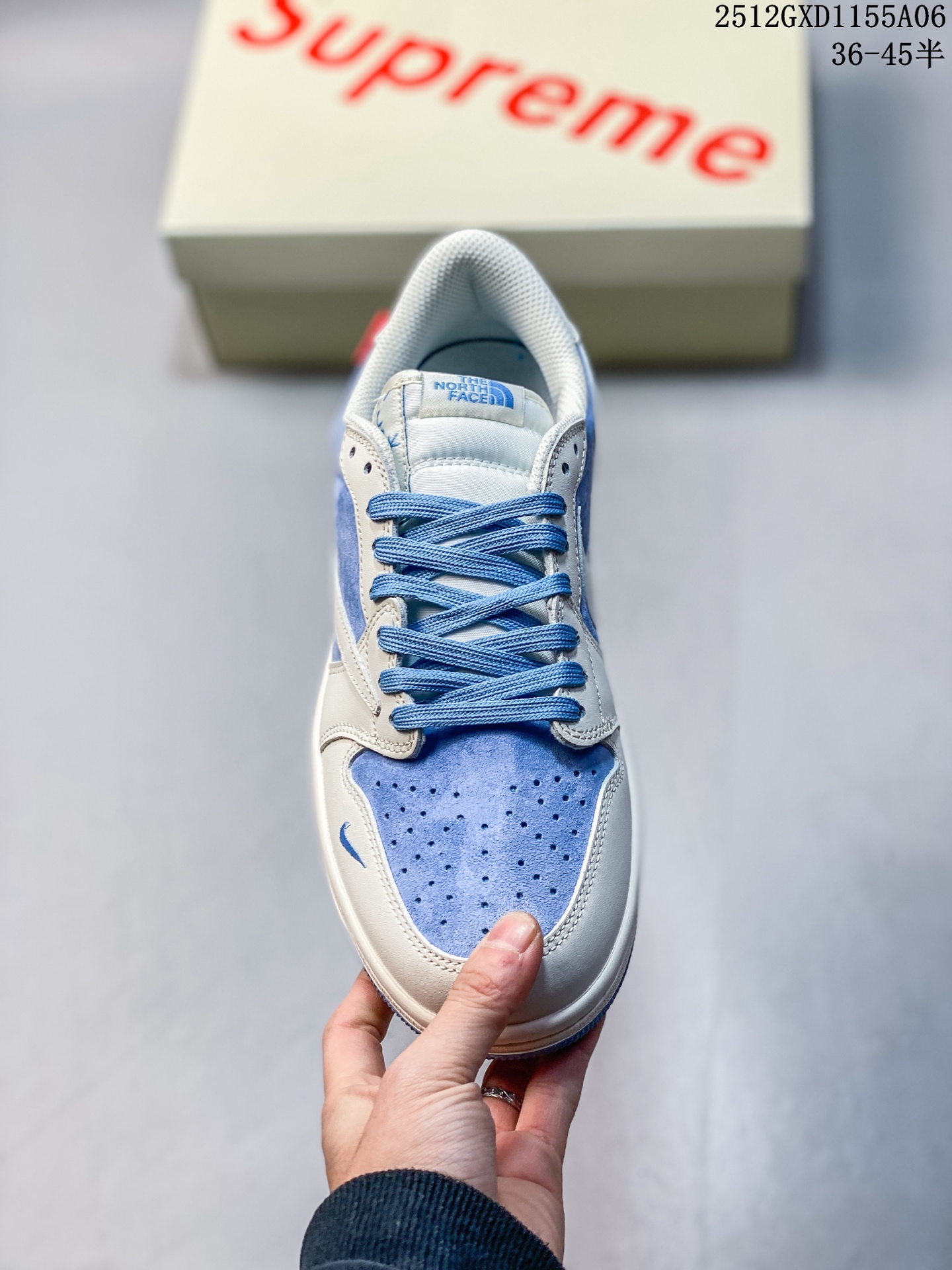 海外爆款限量发售 Travis Scott x Fragment Design x Jordan Air Jordan 1 Low OG SP 北面三方联名 冰蓝猪八革 多方联名合作融合了Travi灰勾s Scott 独特的音乐风格 藤原浩个性的设计风格以及Jordan品牌的经典元素 使其成为一双具有独特身份和价值的鞋子 清新而立体的外观加上联名标识更突出了其独特身份 这种配色方案显示出活力和时尚感 在视觉上引人注目 鞋身的质感和细腻的细节处理使其显得高端而格调十足 这款 倒钩 联名是设计与创意完美结合 融合多方的个性风格是一款备受瞩目的潮流鞋款 低帮休闲板鞋 定制鞋盒 大厂纯原品质出货 超高清洁度 皮料切割干净无任何毛边 细节完美