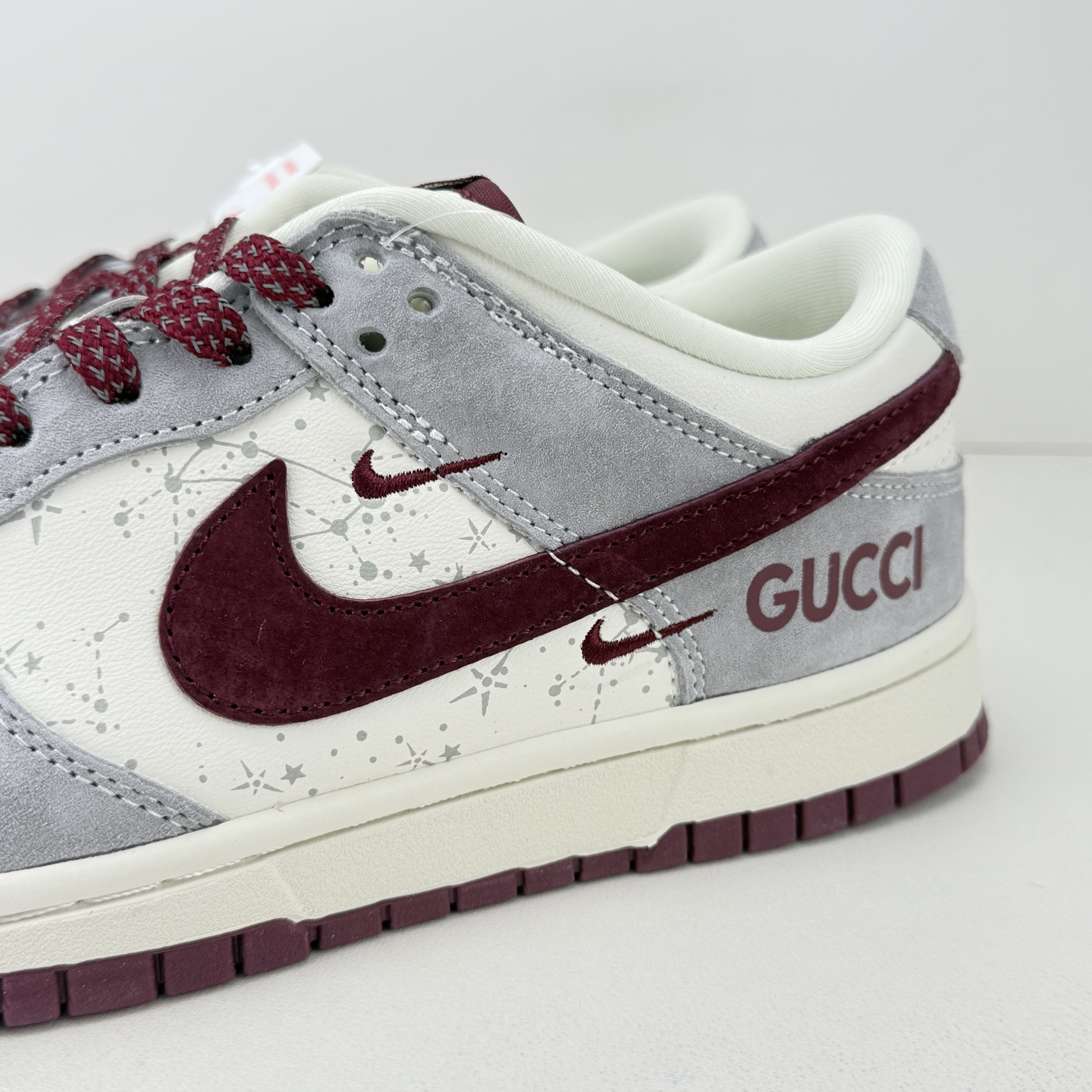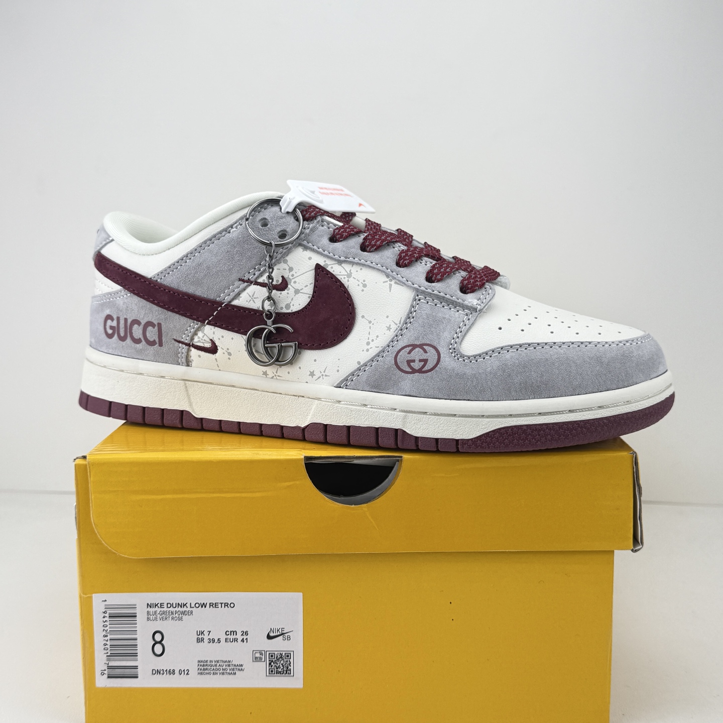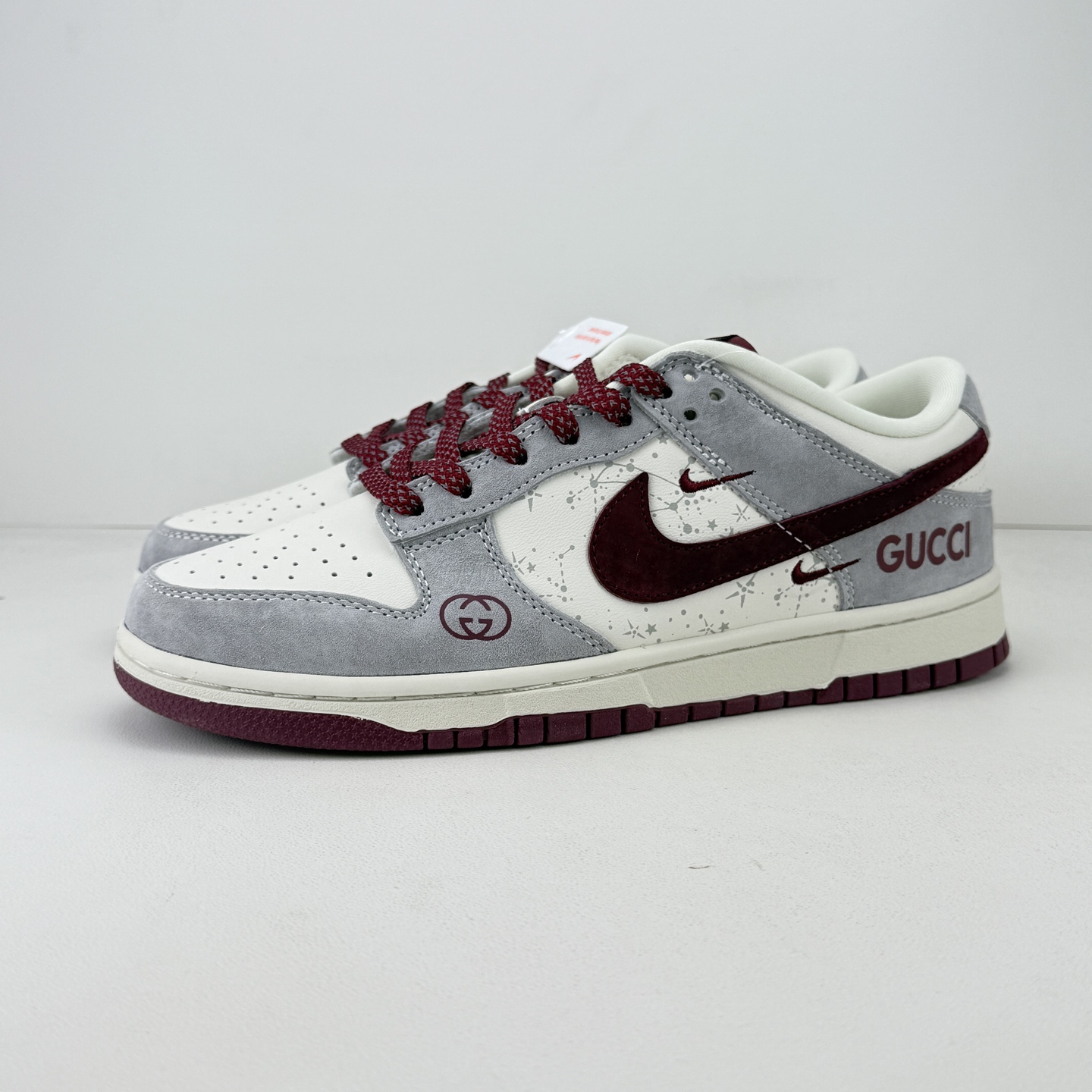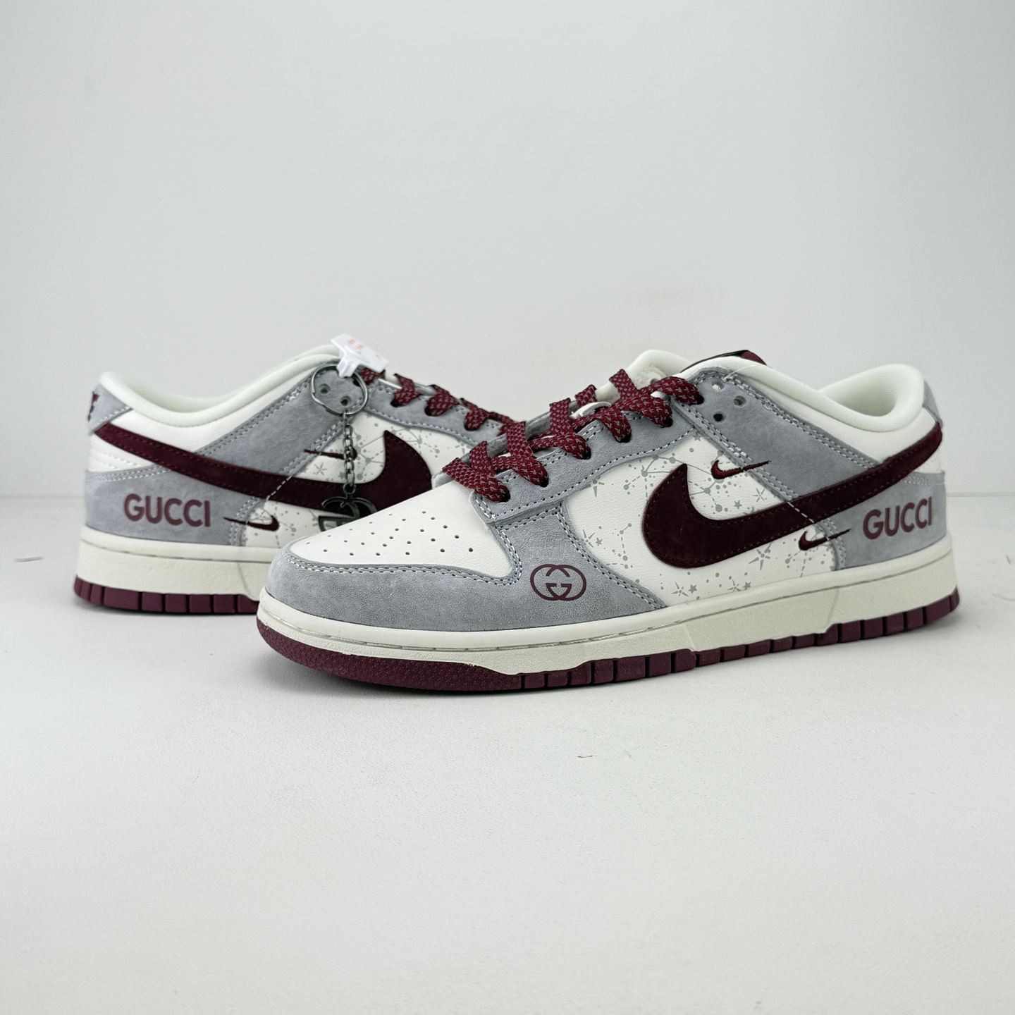 Gucci联名SB Dunk Low直接刷新奢潮天花板 灰白拼酒红的配色高级又复古 细腻麂皮搭配泼墨纹理鞋身 双G标识与GUCCI字母印花满是联名质感 金属G字吊坠更是点睛之笔 经典低帮版型包裹性超赞 软弹鞋垫踩屎感拉满 搭卫衣 西装都能穿出高街范 这款奢潮联名款 收藏穿搭都是绝绝子