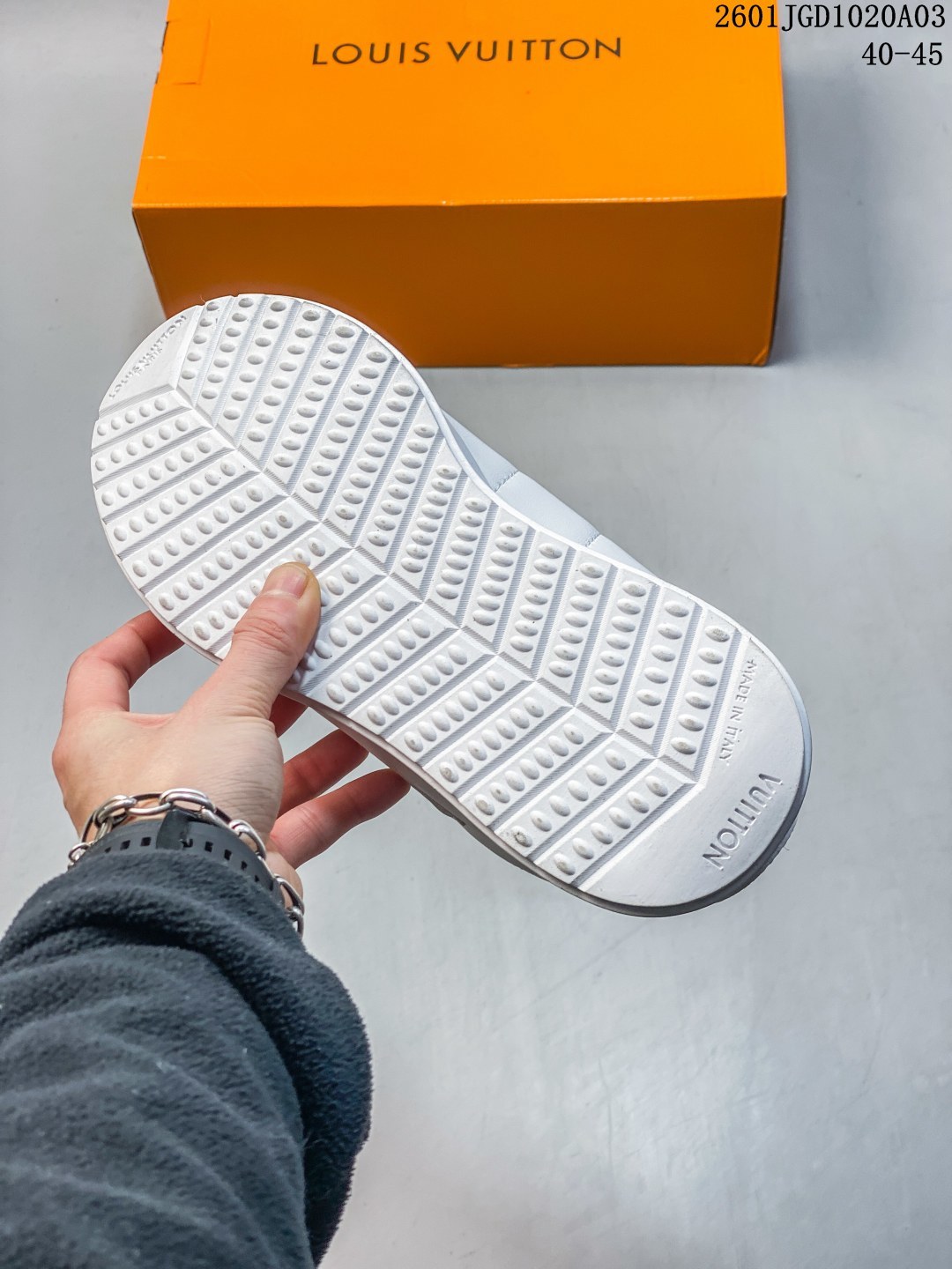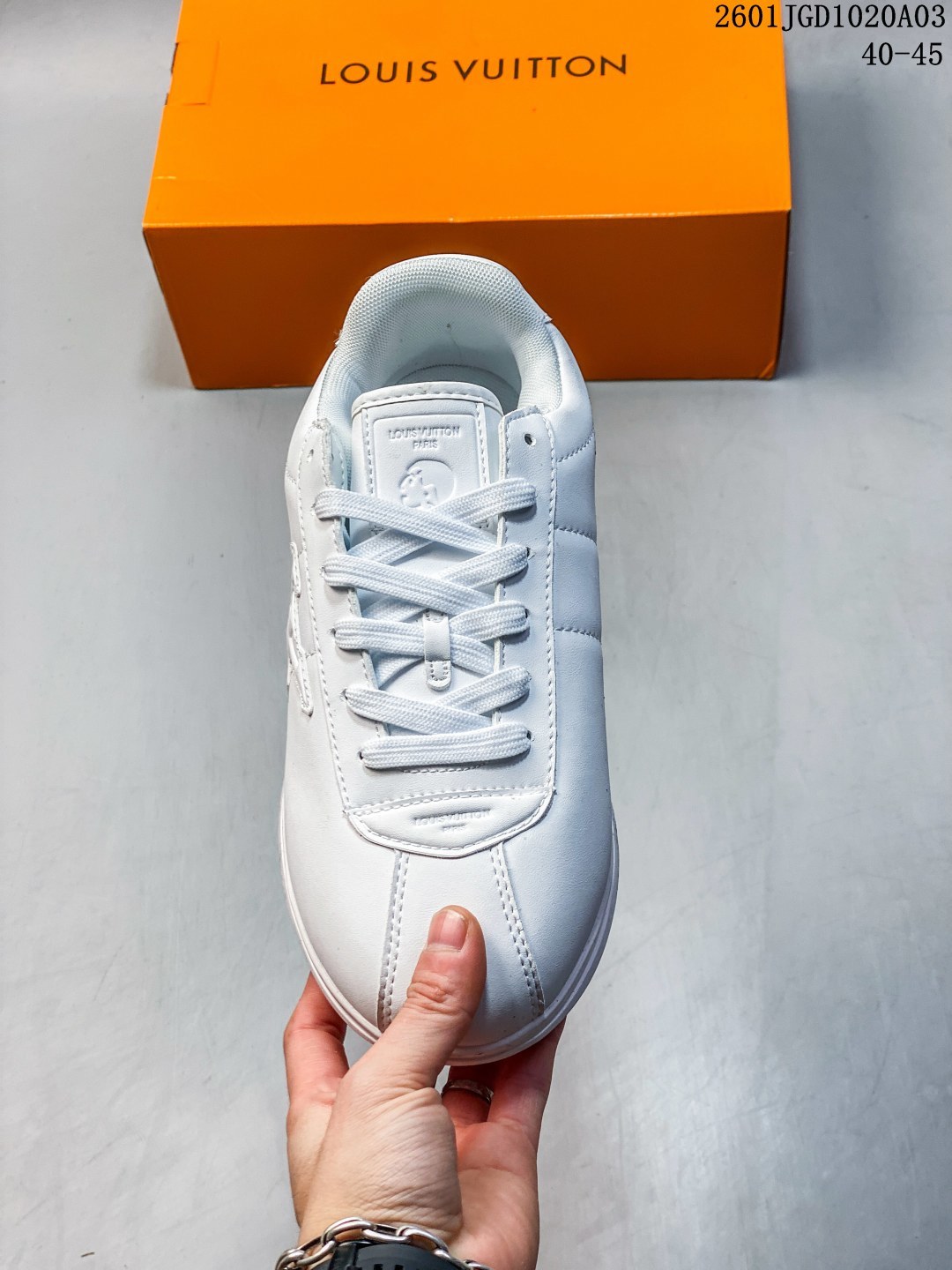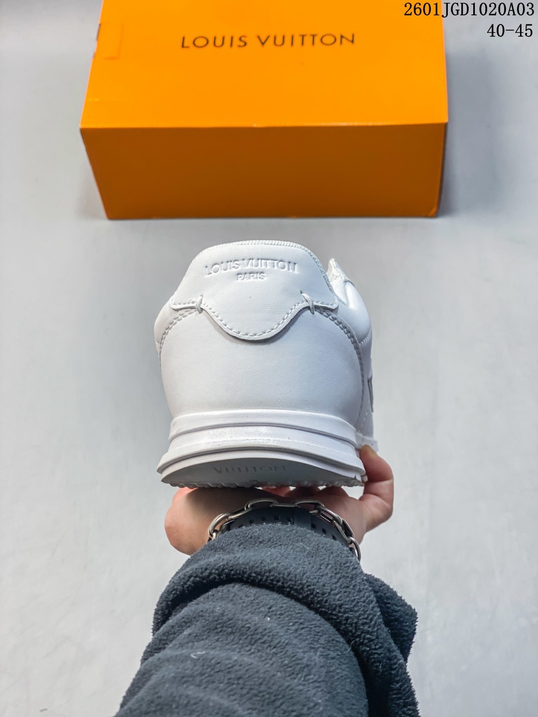 路易威登 LV TRAINER SNEAKER 2025年联名款 驴牌新款LV联名阿甘跑步运动鞋 胖丁面包鞋 训练鞋 Chill 感时髦尖子生LV25复古芭蕾舞德训鞋复古德训运动休闲跑步鞋 鞋设计特点 融合芭蕾舞鞋的优雅与德训鞋的复古运动感 鞋面采用品牌标志性老花元素和字母标识 流畅鞋型设计显脚小 被评价为 修饰脚型一绝