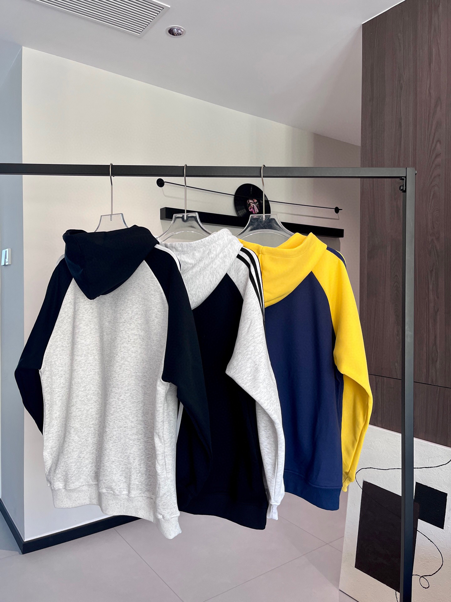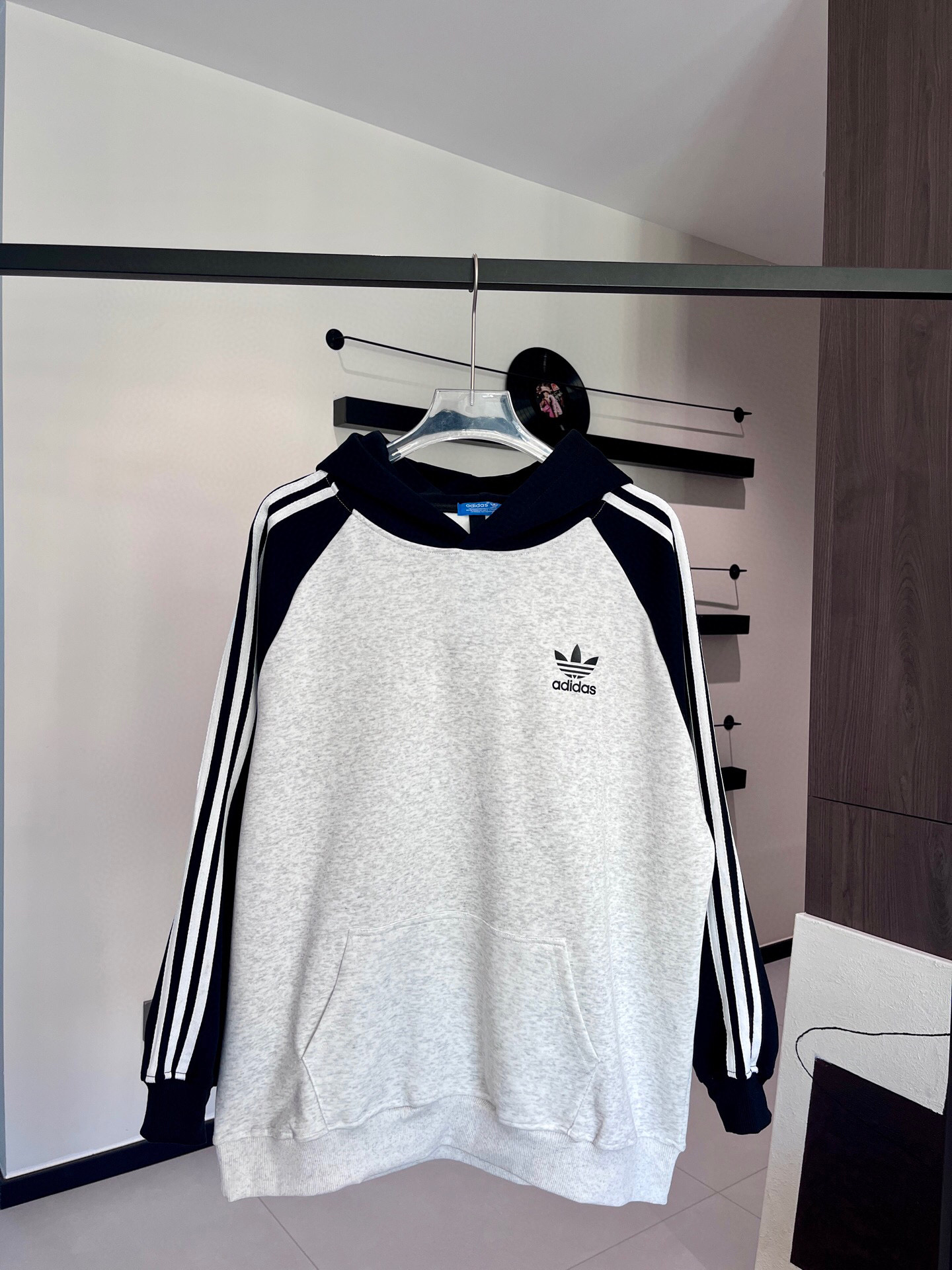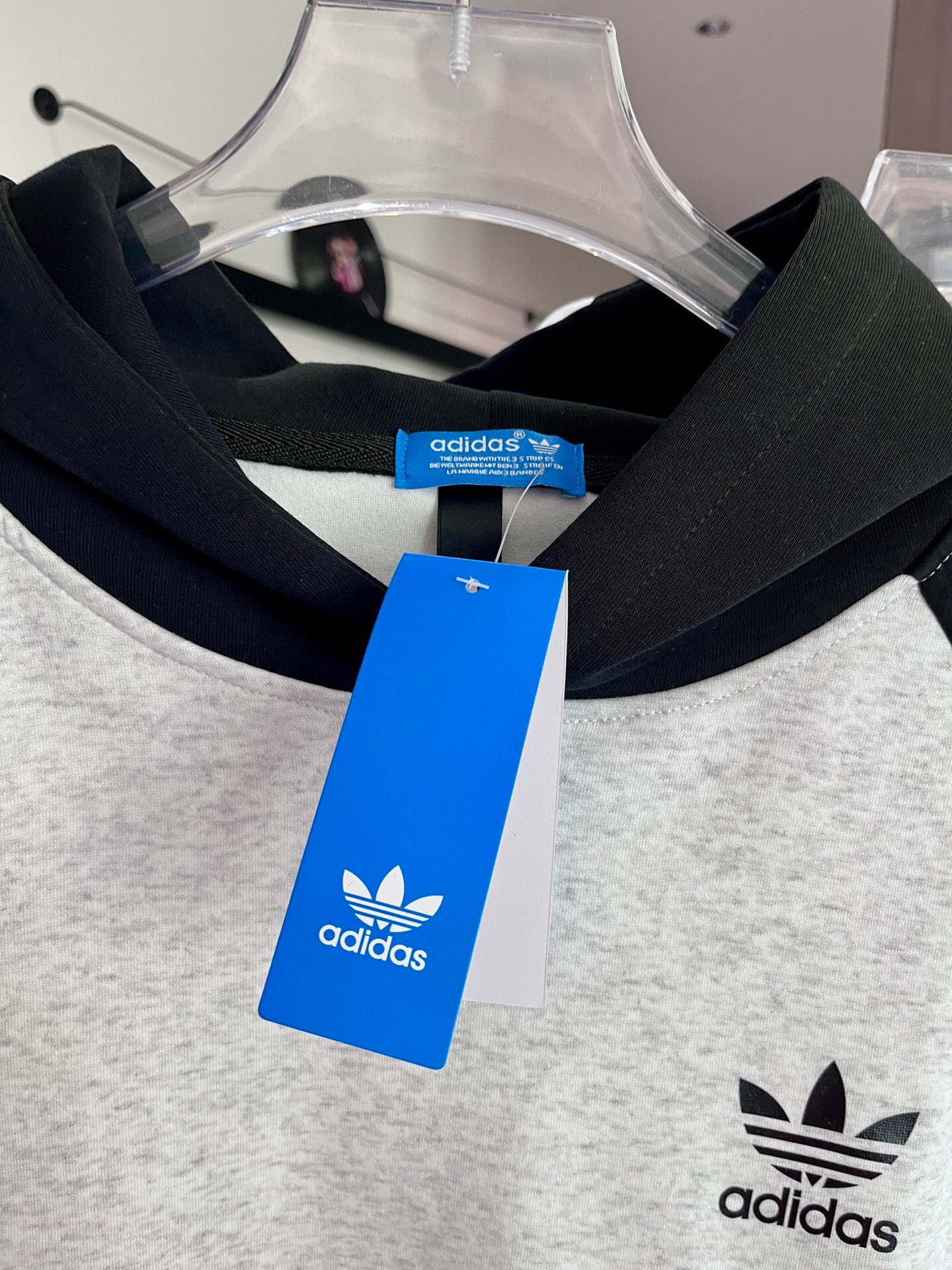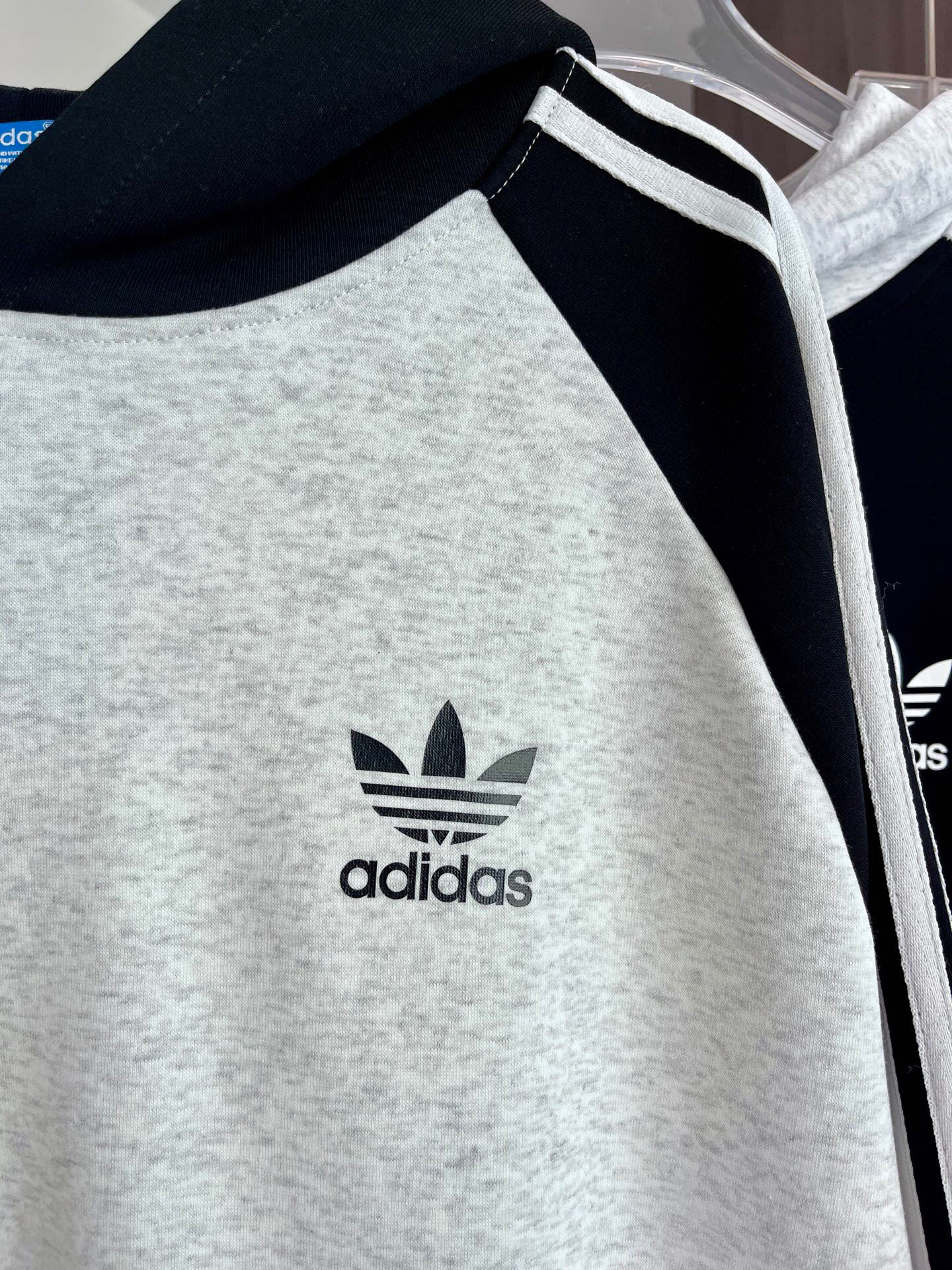100129968 - Adidas阿迪达斯三叶草专柜同款发售经典拼色三杠连帽卫衣 367165