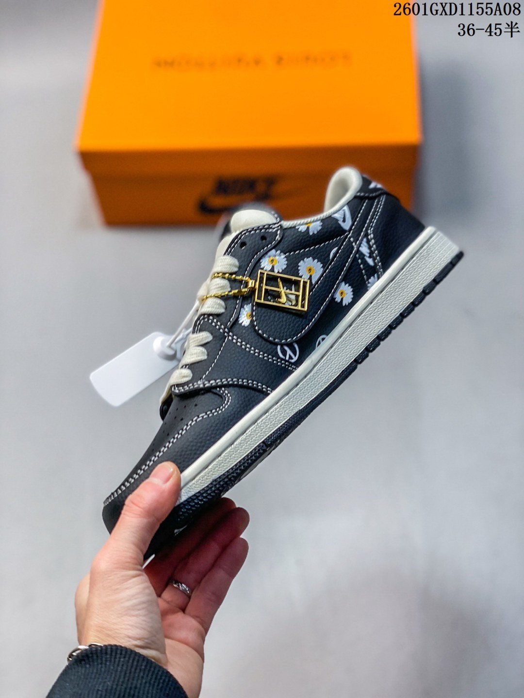 2026爆款限量发售 高端定制 Travis Scott x Fragment Design x Jordan Air Jordan 1 Low OG SP Nike联名 黑白小邹菊 高端定制 倒钩三方联名低帮篮球鞋