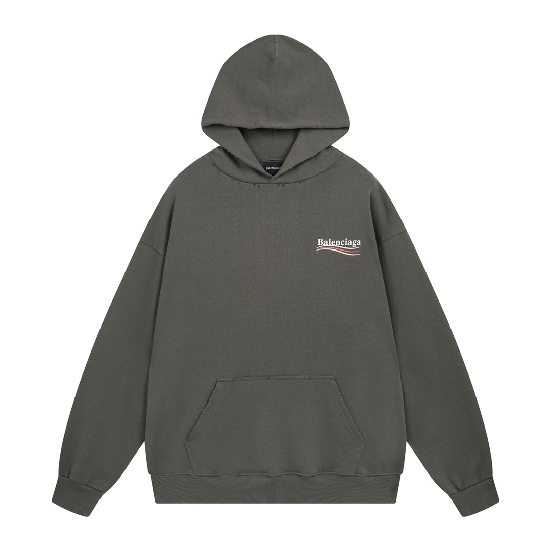 细节图 顶级版本 官网品质 BALENCI GA 巴黎 经典款 2023秋冬新款 可乐拉裂印花磨烂做旧长袖连帽卫衣