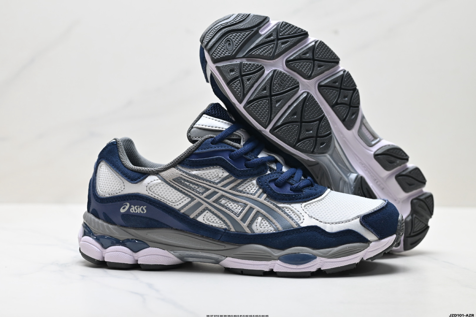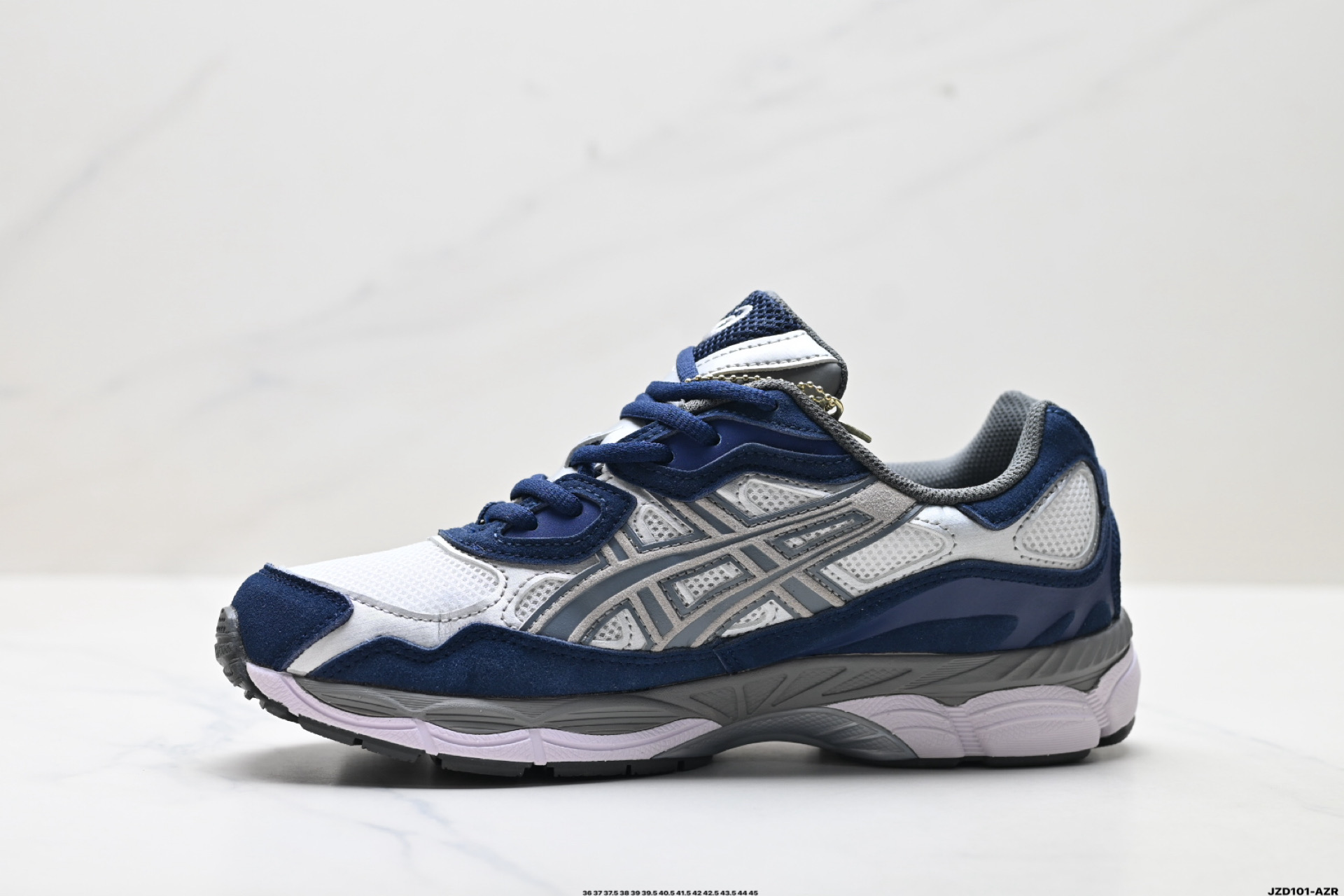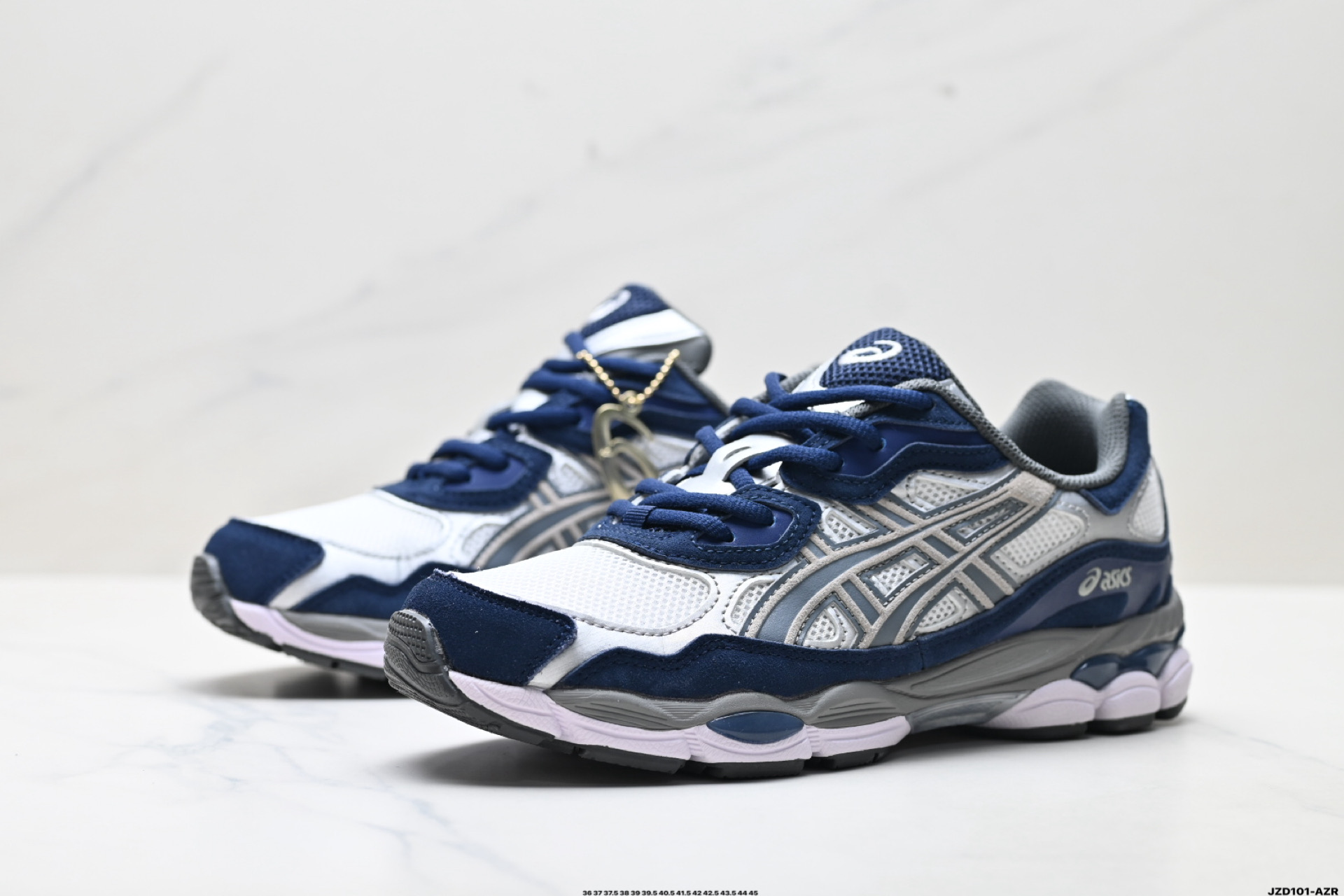 真标ASICS GEL NYC 亚瑟士 透气网眼鞋面 配合部分合成革材质 采用全新AHAR 橡胶材质 更加耐磨 货号 1201A789 100 尺码 36 37 37 5 38 39 39 5 40 5 41 5 42 42 5 43 5 44 45 ID JZD101 AZR