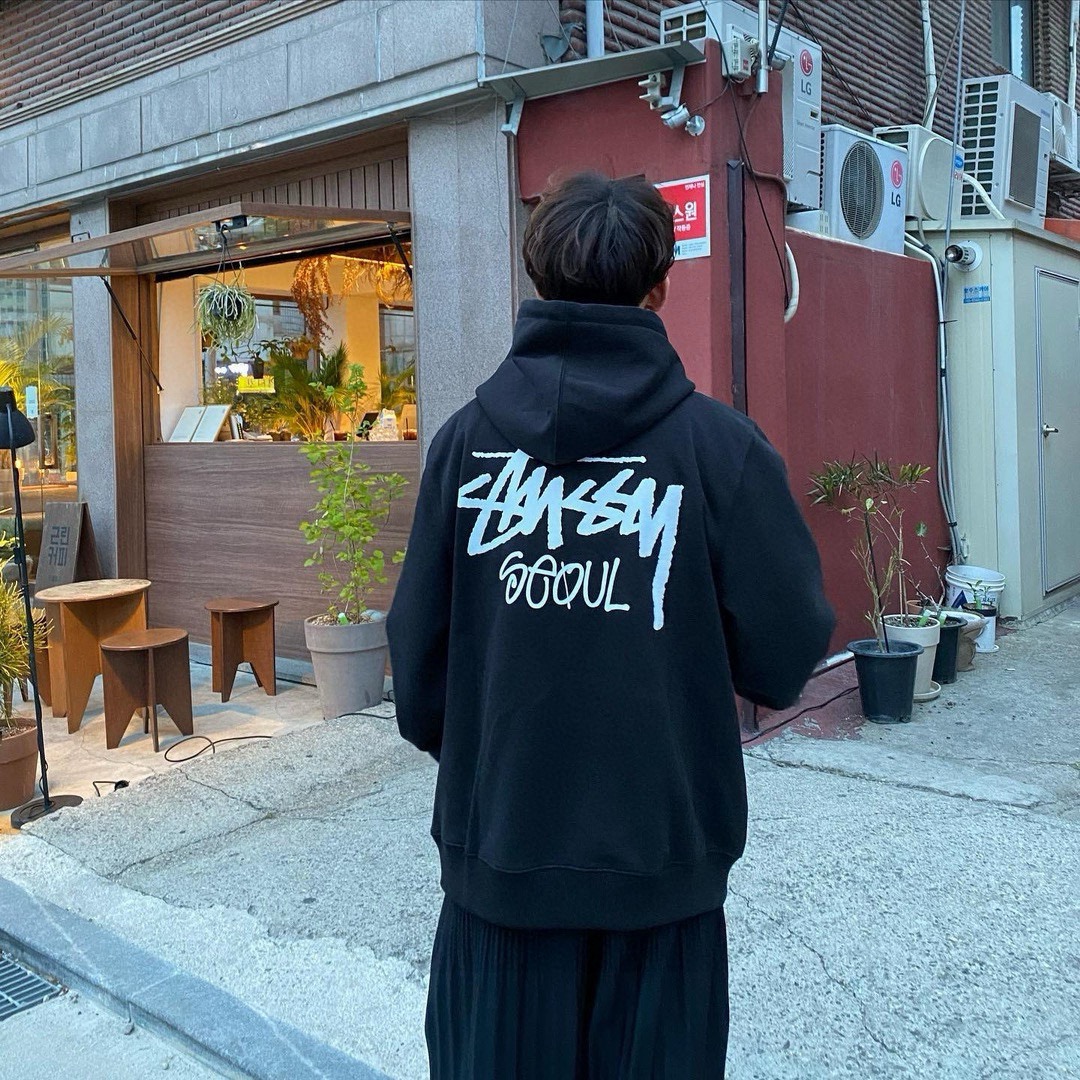 stussy 斯图西韩国限定冬季加绒重磅连帽卫衣