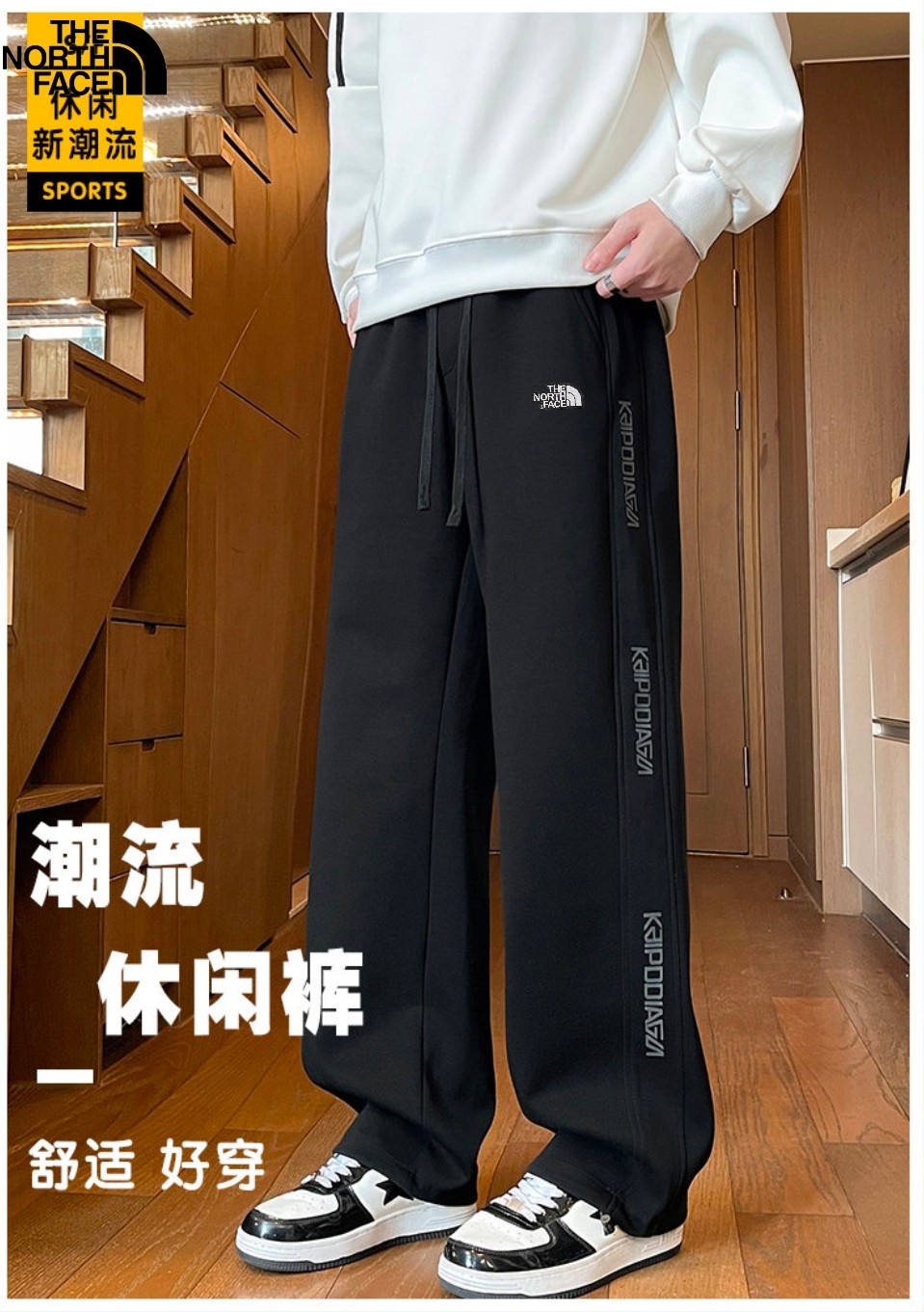 购物价 北面The North face秋冬新款 男女同款松紧腰百搭侧边字母潮流弹力休闲裤 男士舒适卫裤 直筒裤长裤