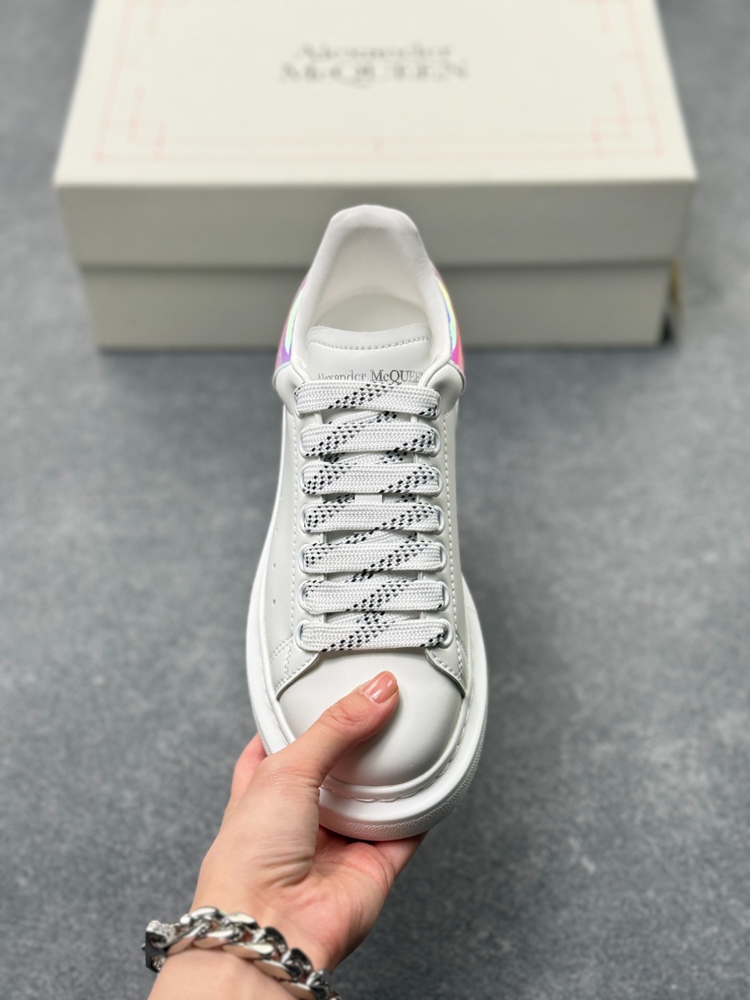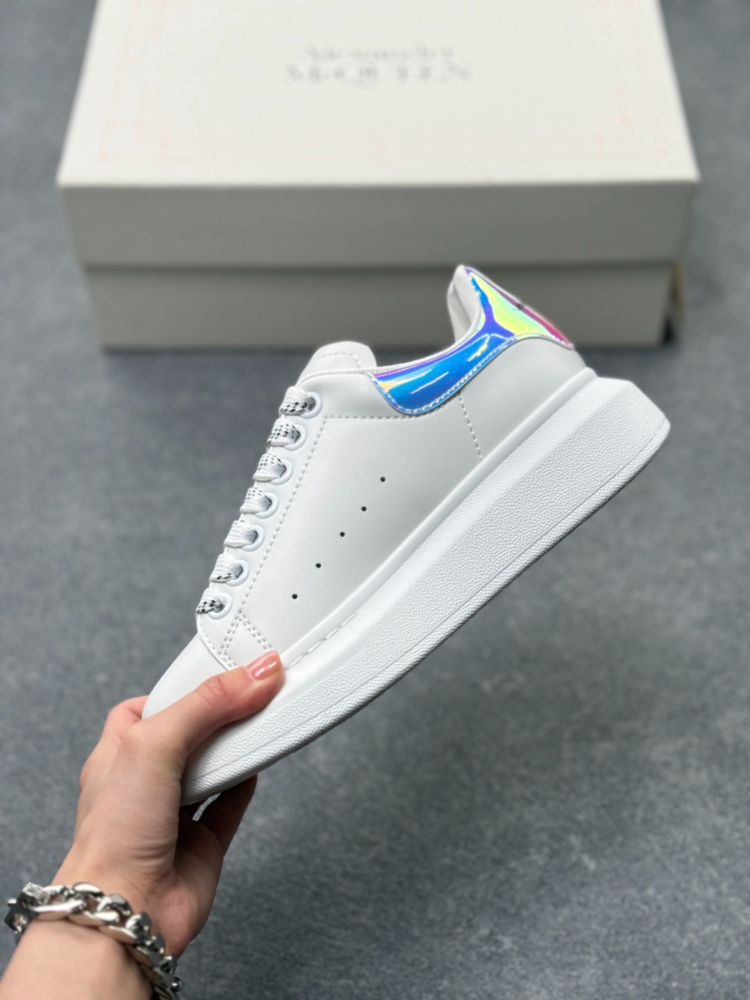 意大利高奢品牌Alexander McQueen亚历山大 麦昆 Sole Leather Sneakers 松糕鞋厚底增高小白鞋