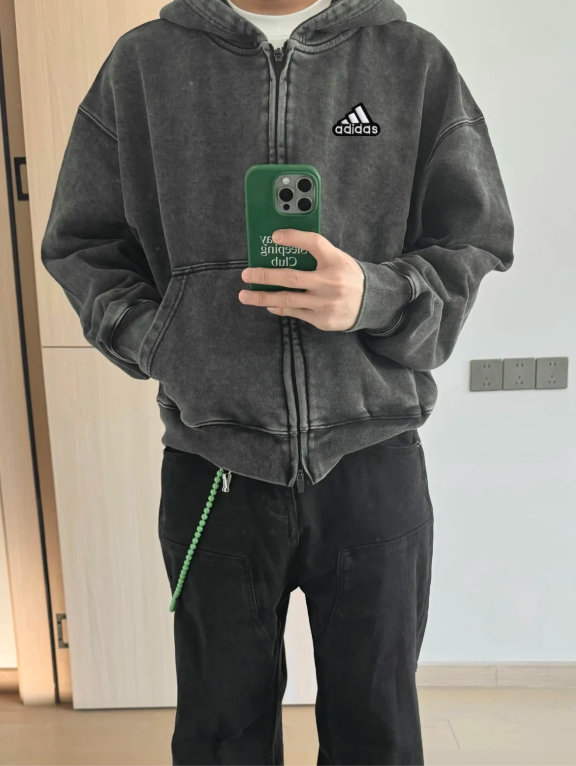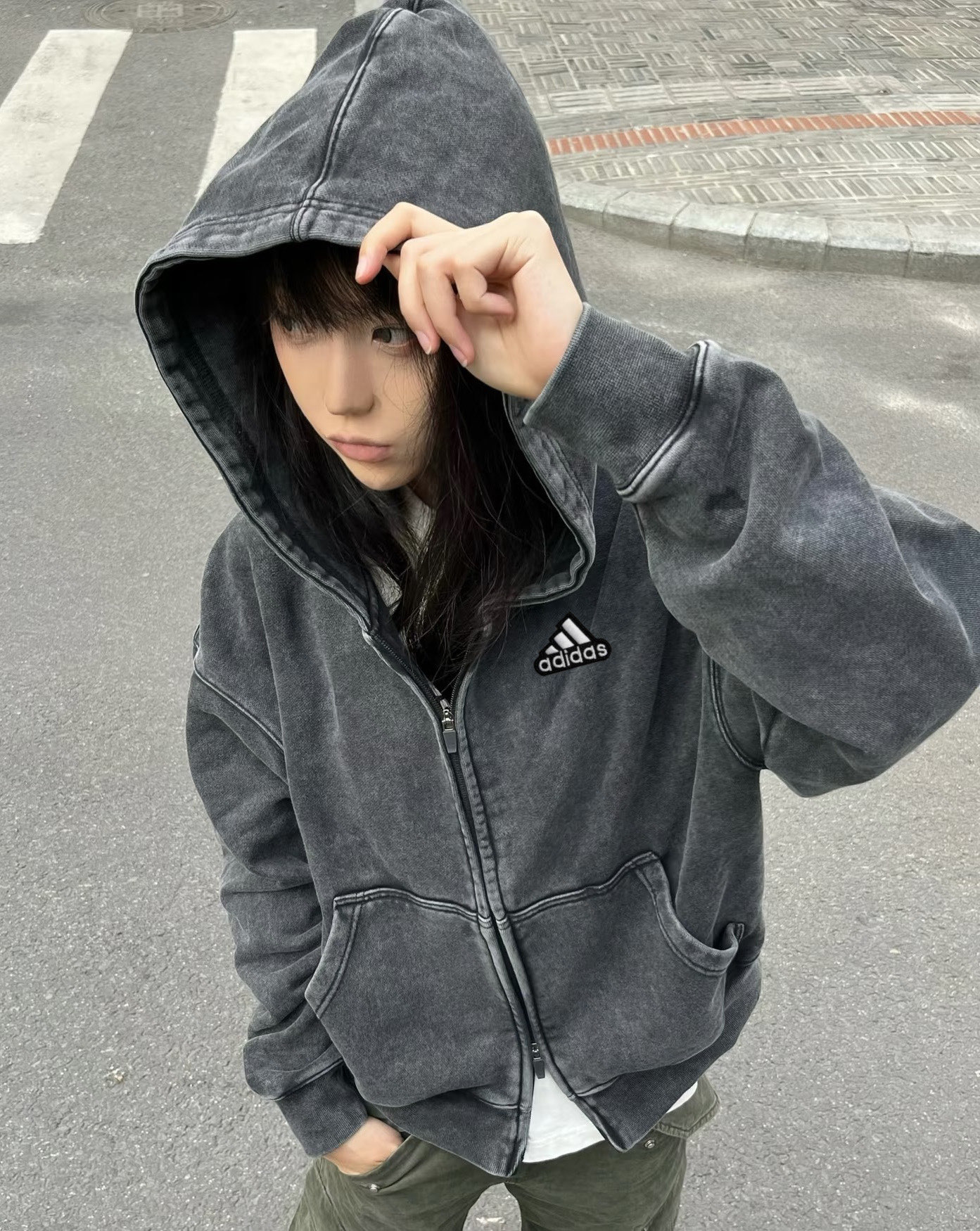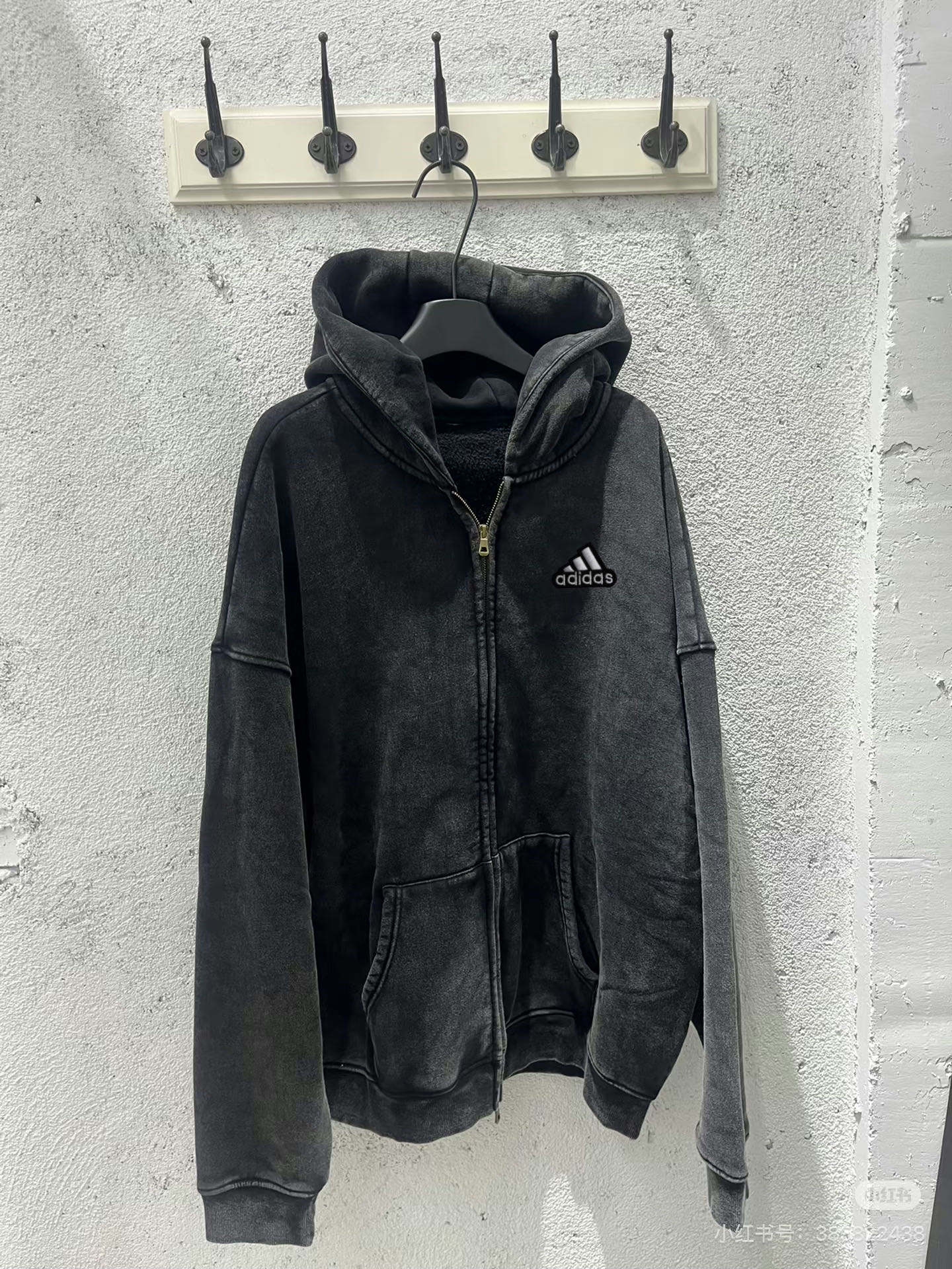 阿迪达斯Adidas500g重磅短宽cleanfit宽松水洗纯棉秋冬拉链连帽卫衣外套