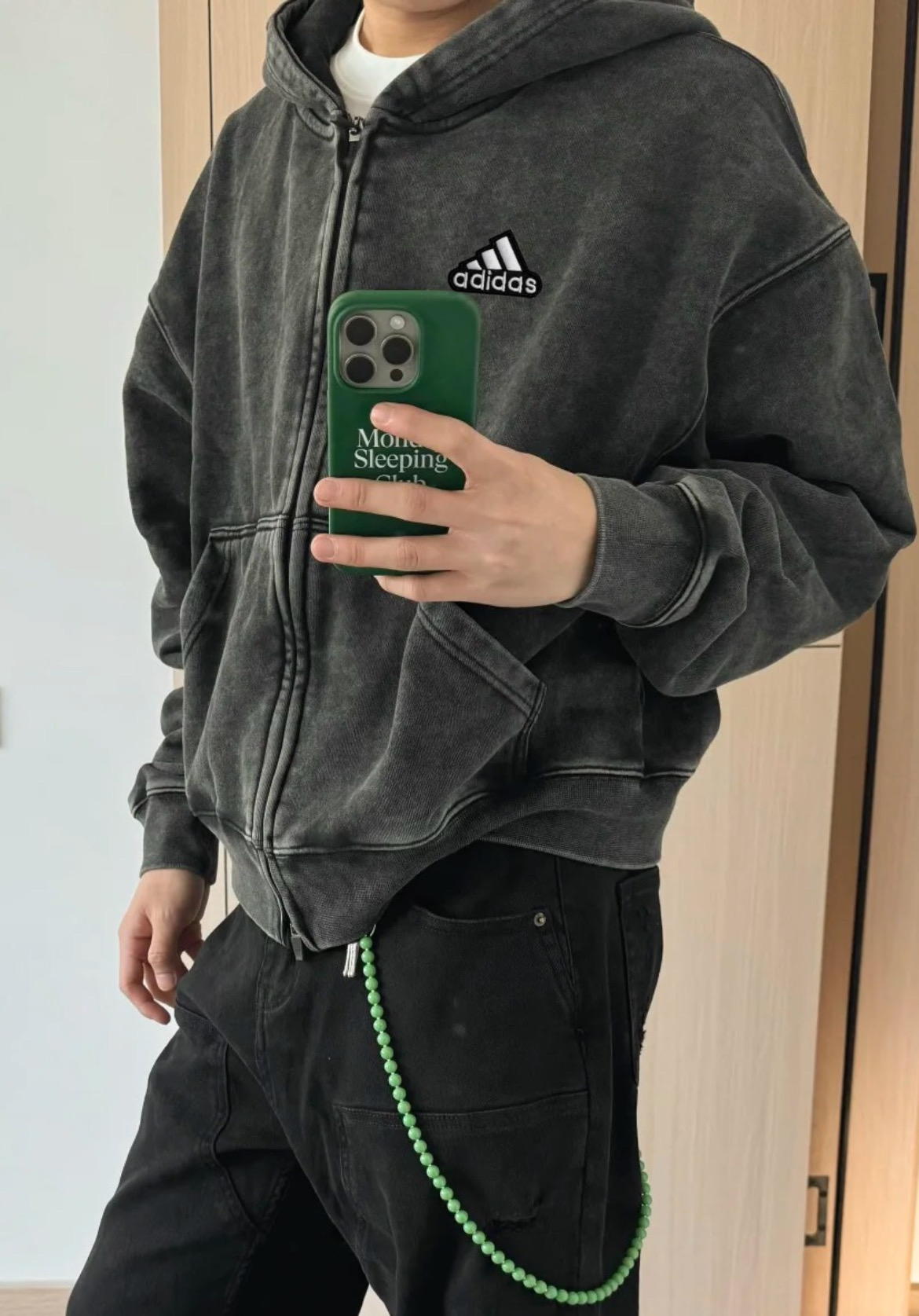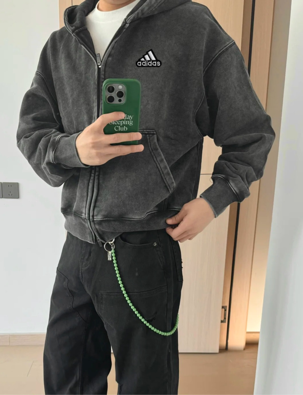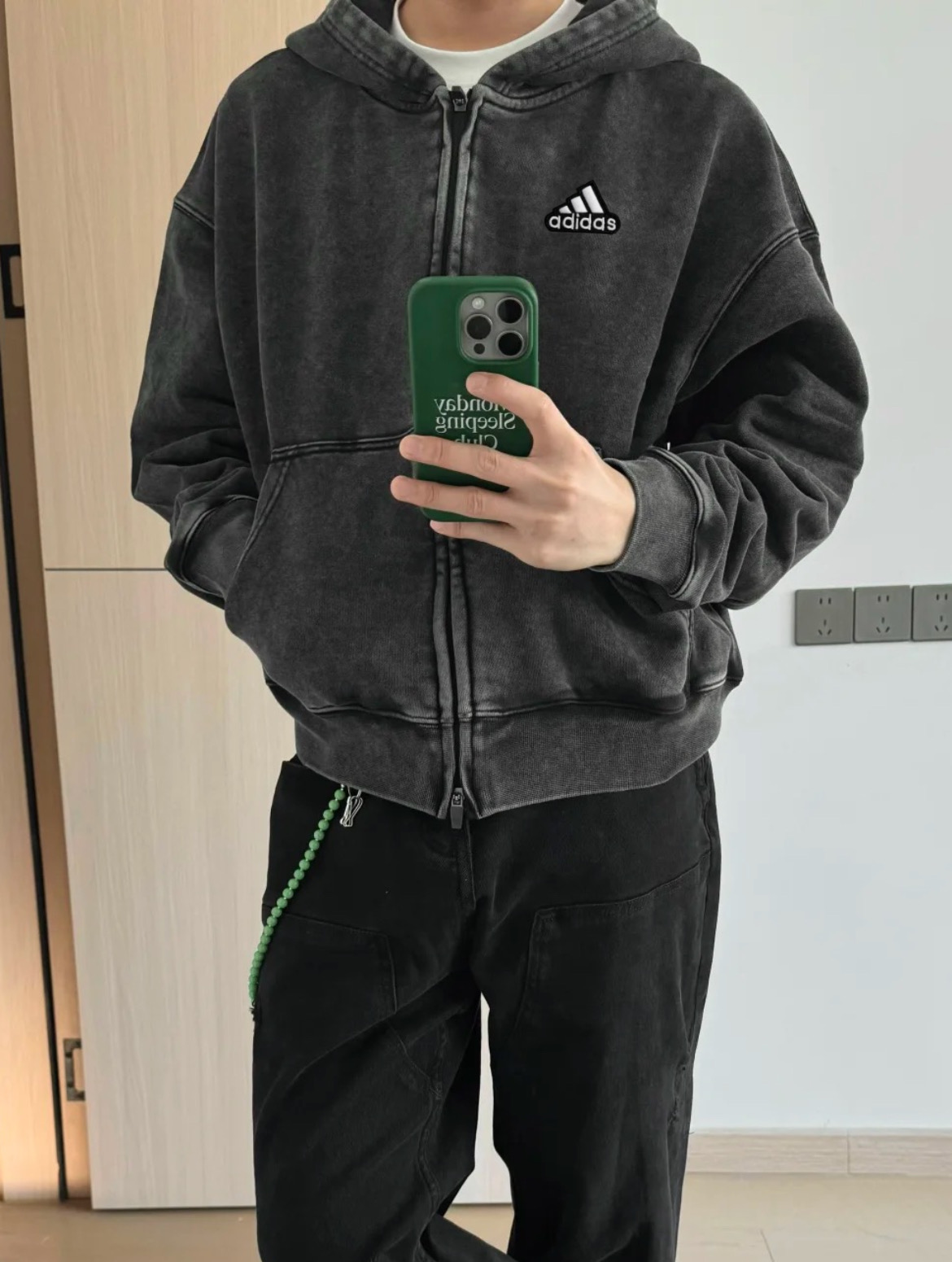 阿迪达斯Adidas500g重磅短宽cleanfit宽松水洗纯棉秋冬拉链连帽卫衣外套